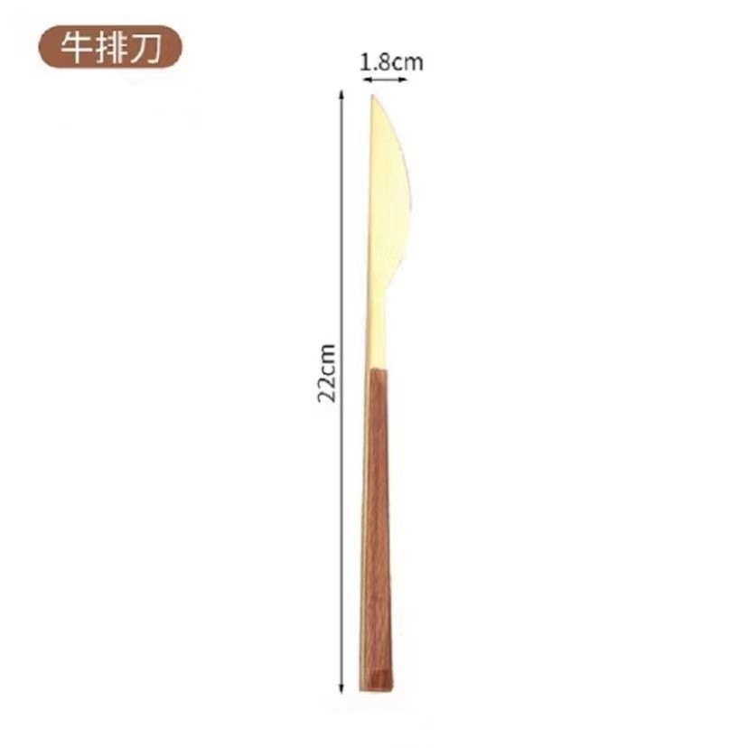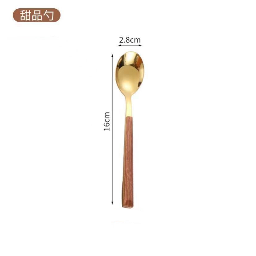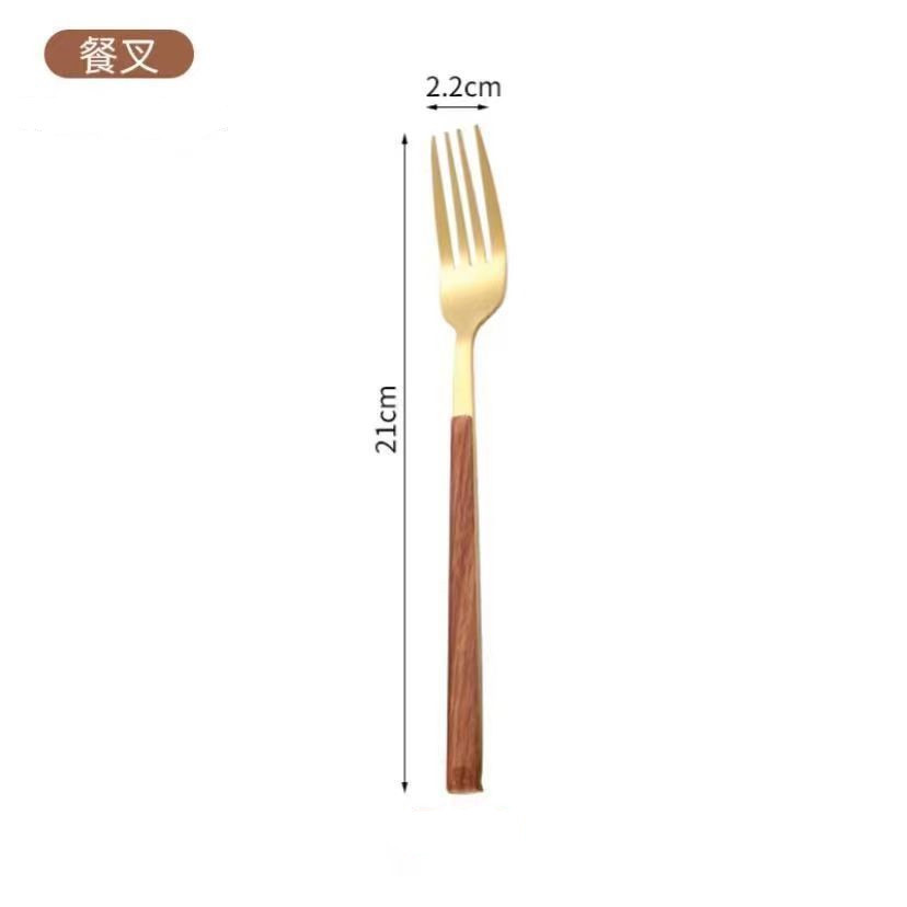 Ins imitation wood grain slender handle knife, fork and spoon Western breakfast dessert spoon Korean style restaurant stainless steel fruit fork
