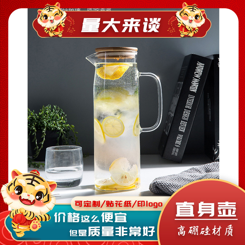 High borosilicate straight glass cold kettle four seasons cold water coffee cup juice large capacity kettle moon kettle with lid