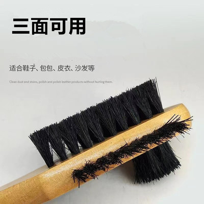 Long-handled soft bristle shoe brush, shoe brush without damaging the brush, three-in-one brush, wooden handle, leather shoe brush, shoe washing brush, cleaning and oiling brush
