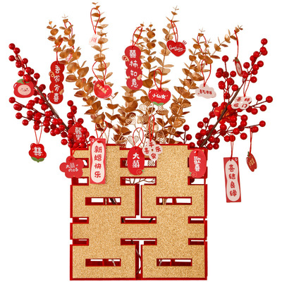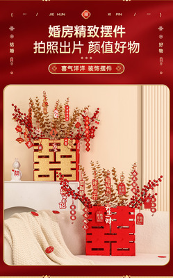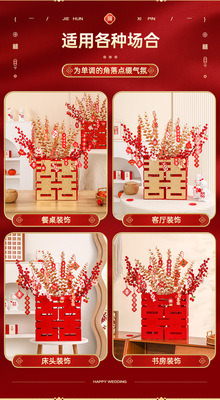 Wedding 3D Double Happiness Character Decorative Piece for Marital Home Arrangement, Double Happiness New Room Bedroom Living Room Decoration, Wedding Celebration Supply Variety Pack