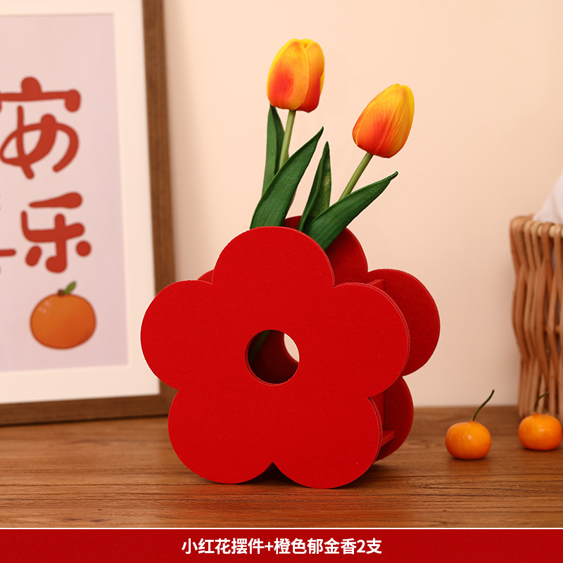 Little Red Flower Ornament + 2 Orange Tulips