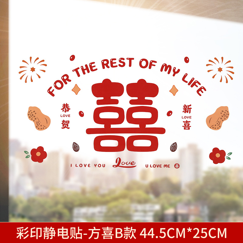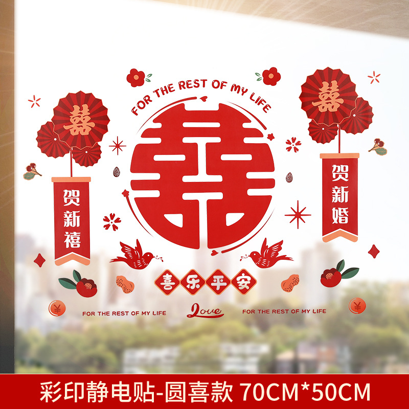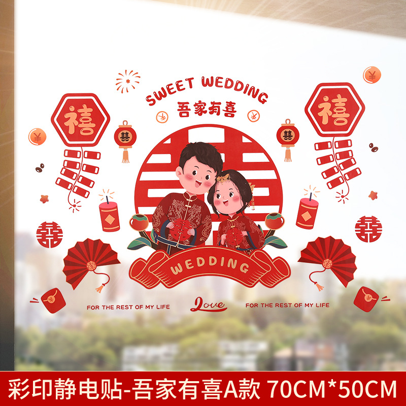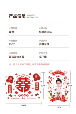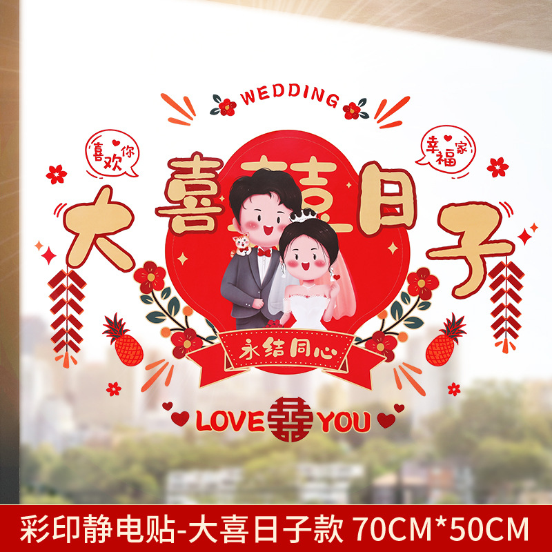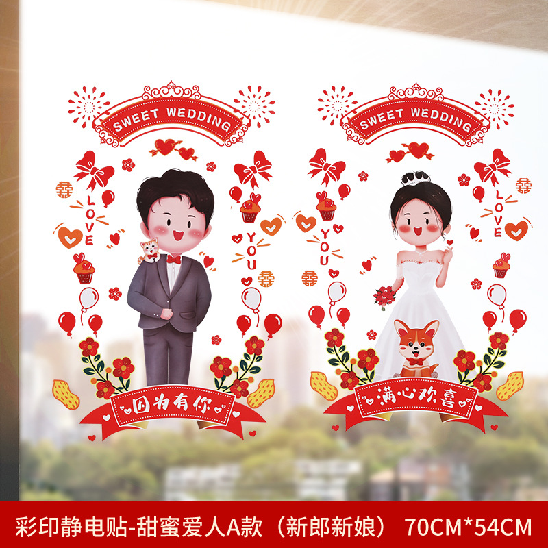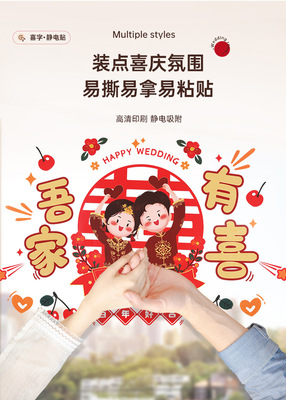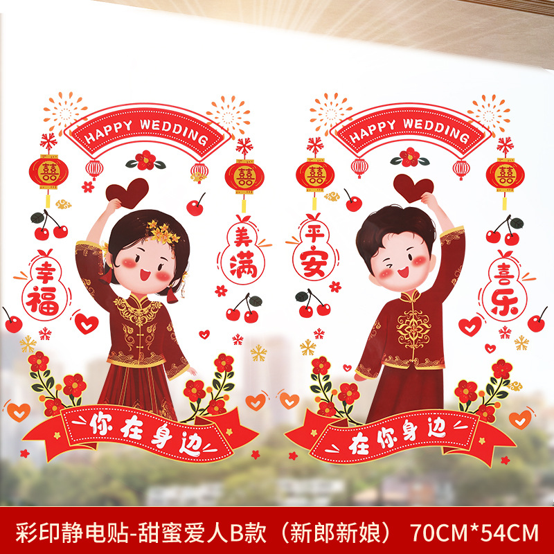Static electricity couple character window paper-cut wedding room decoration double happiness character glass window sticker wedding room decoration door sticker wedding supplies