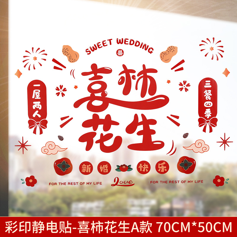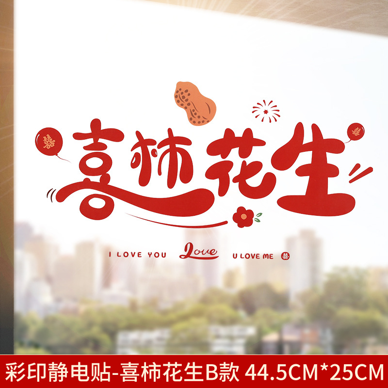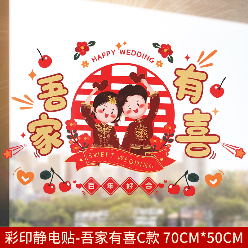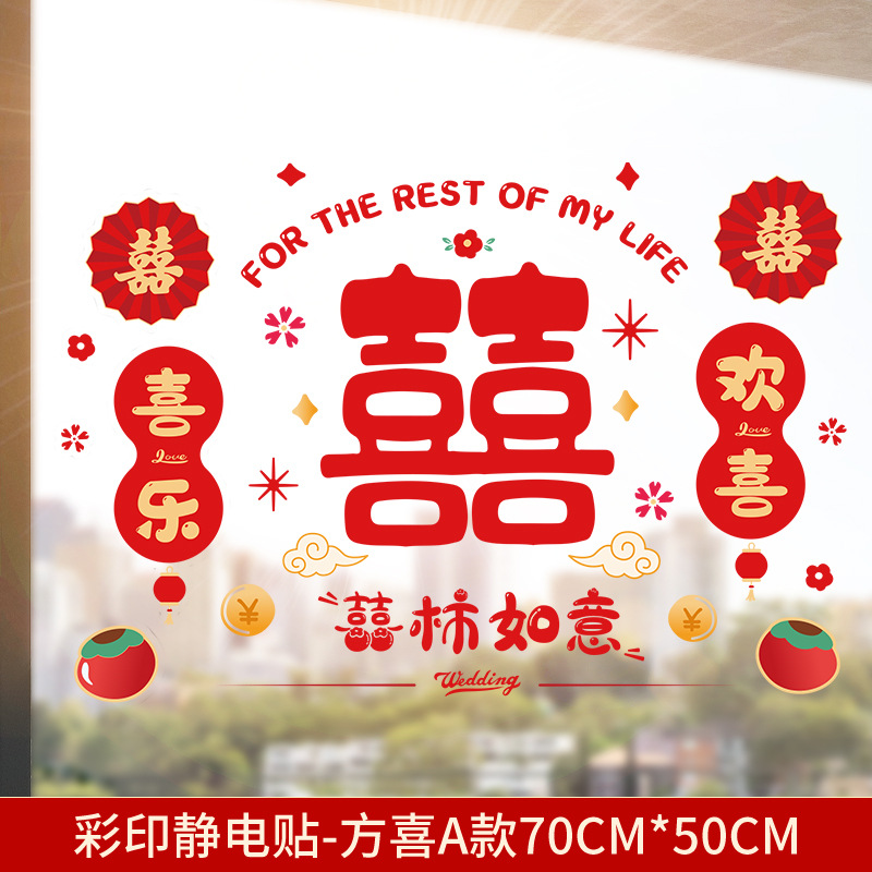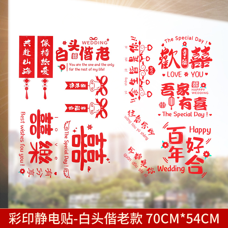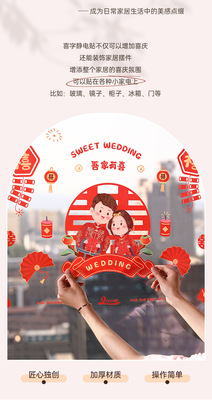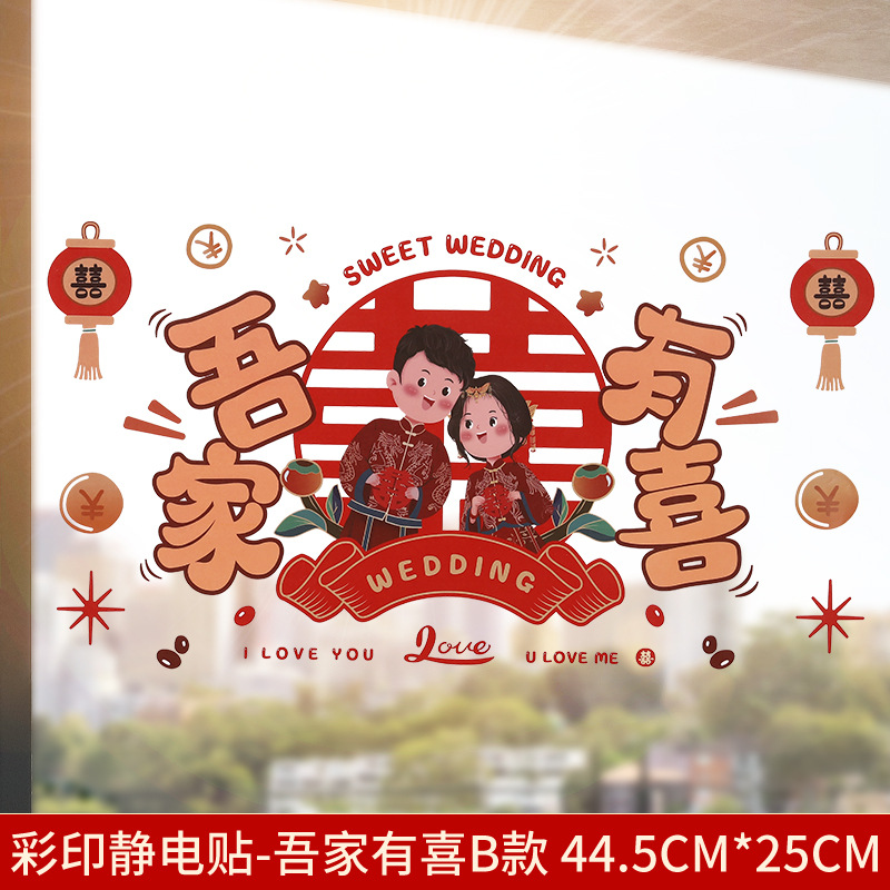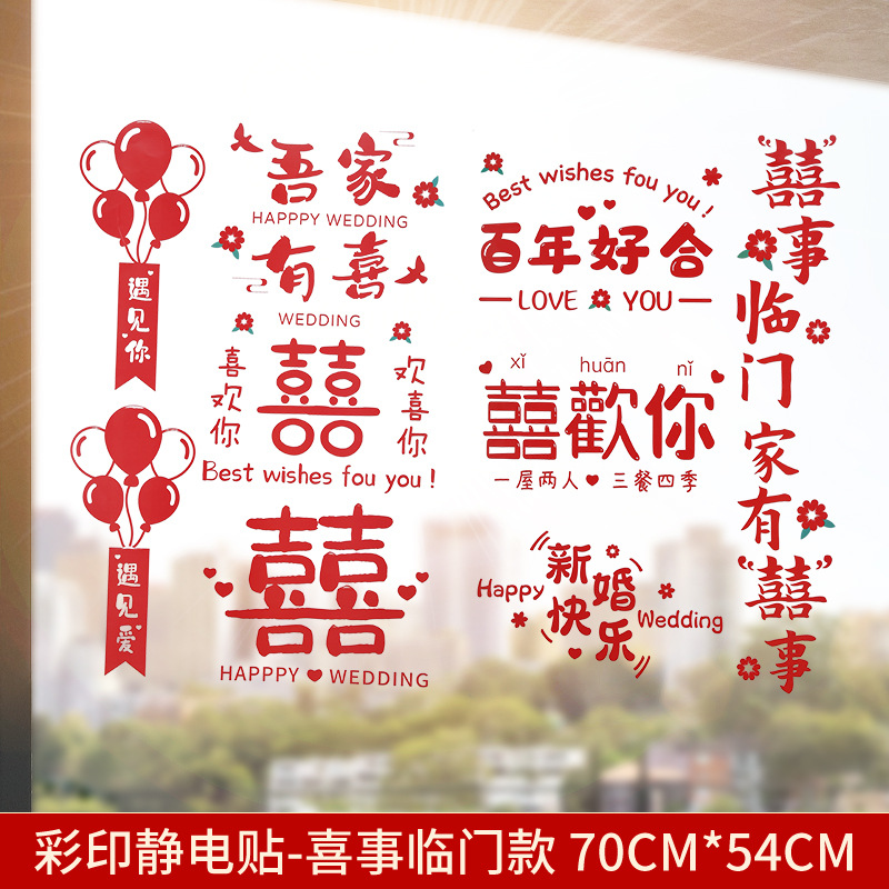 Static electricity couple character window paper-cut wedding room decoration double happiness character glass window sticker wedding room decoration door sticker wedding supplies