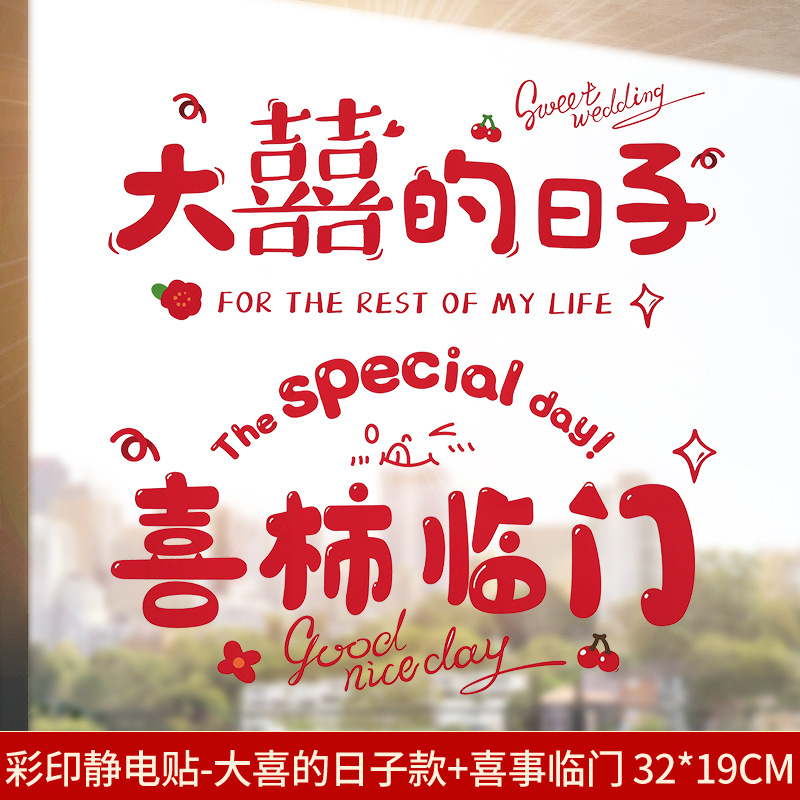 Color Print Electrostatic Sticker - Happy Marriage Version + Happy Wedding Version