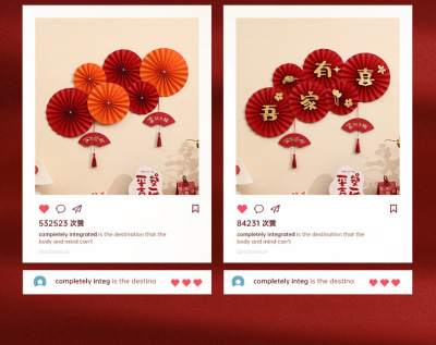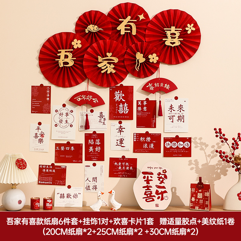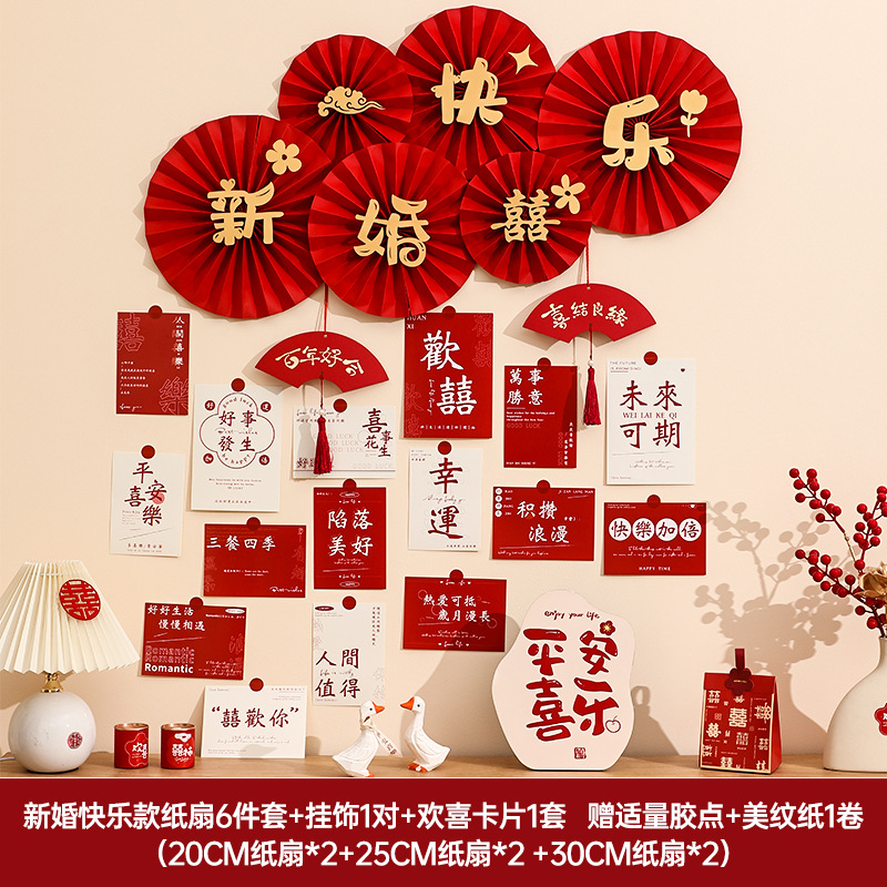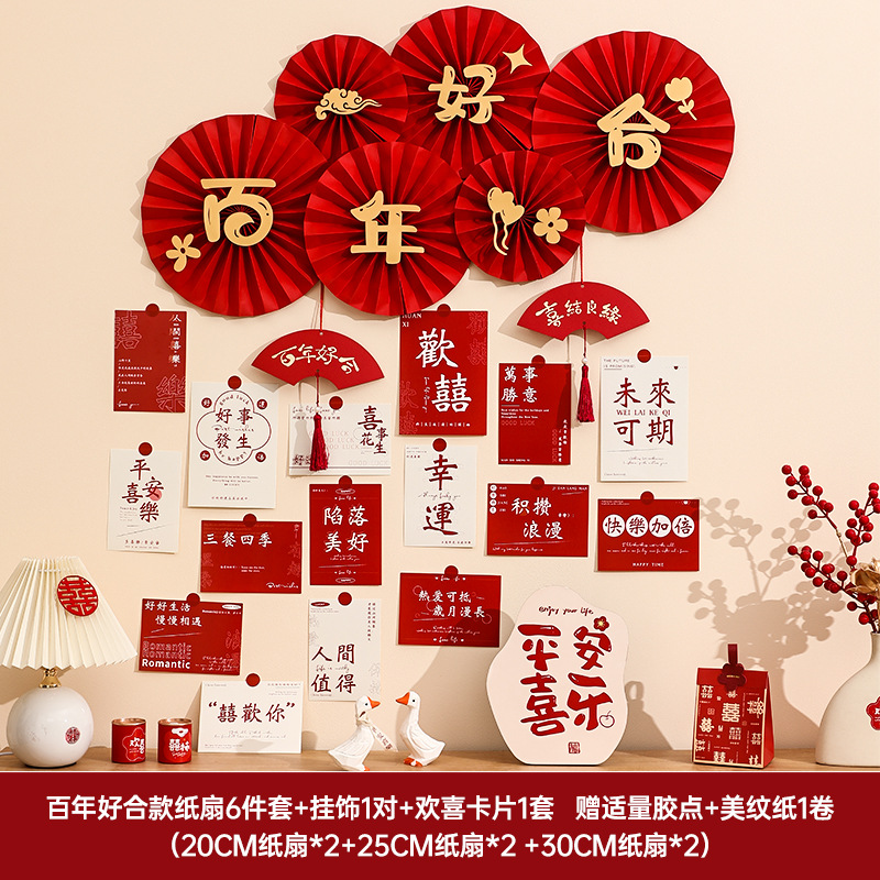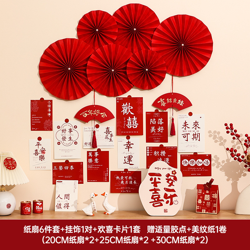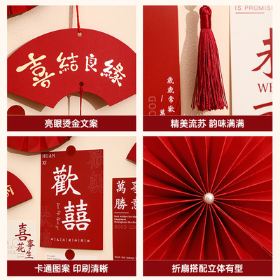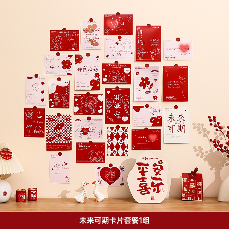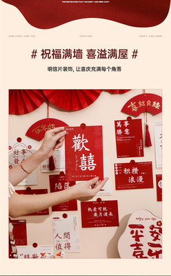 Wedding room decoration set for the bride, wedding character postcards, cards for the new house living room bedroom background wall, flower garlands