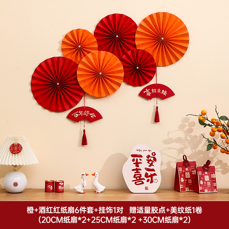 Orange + Wine Red Paper Fan 6-Piece Set