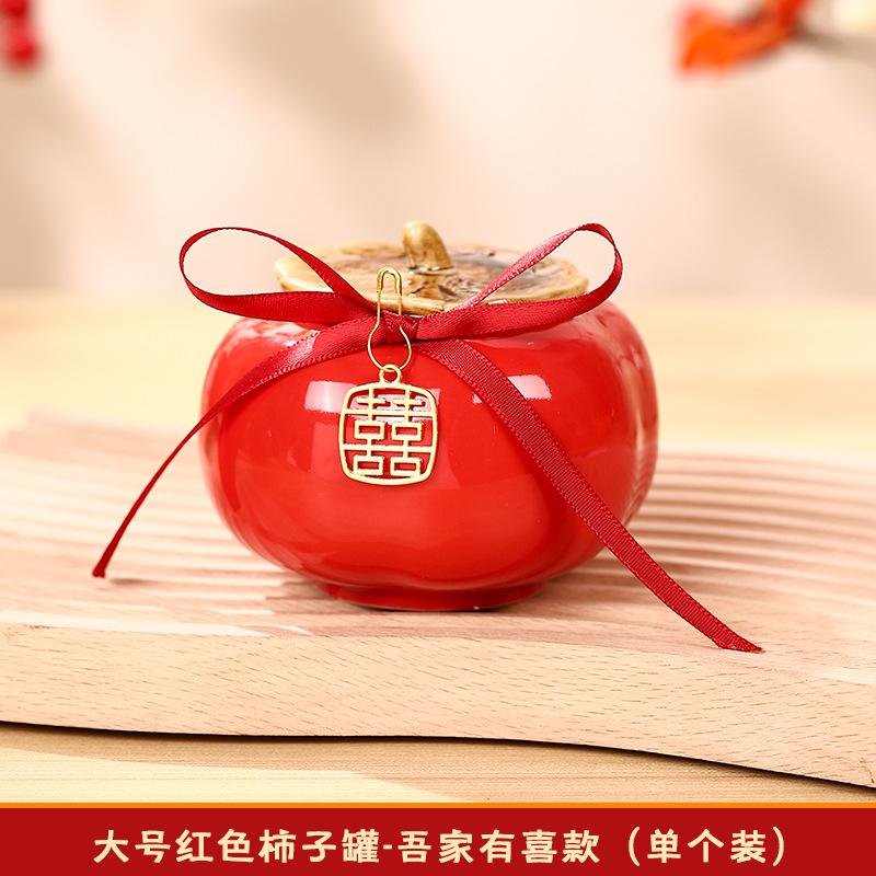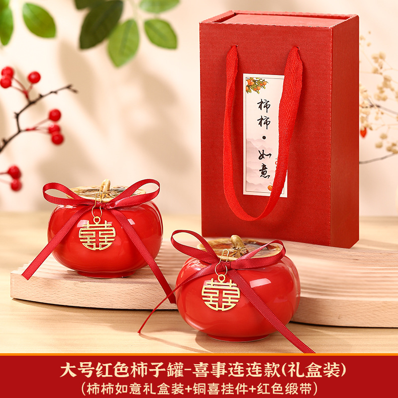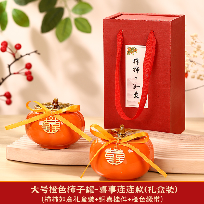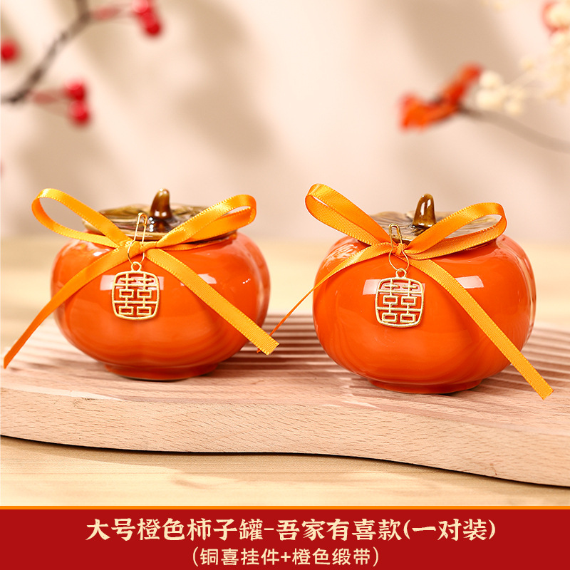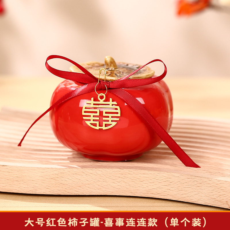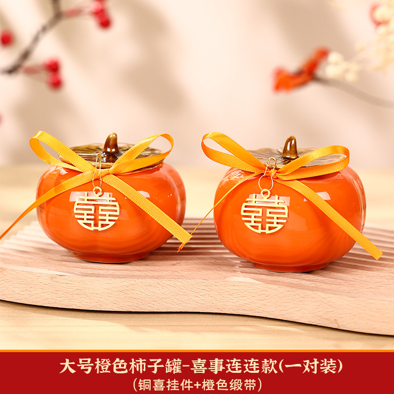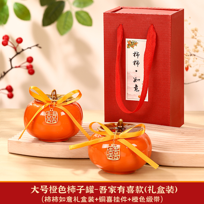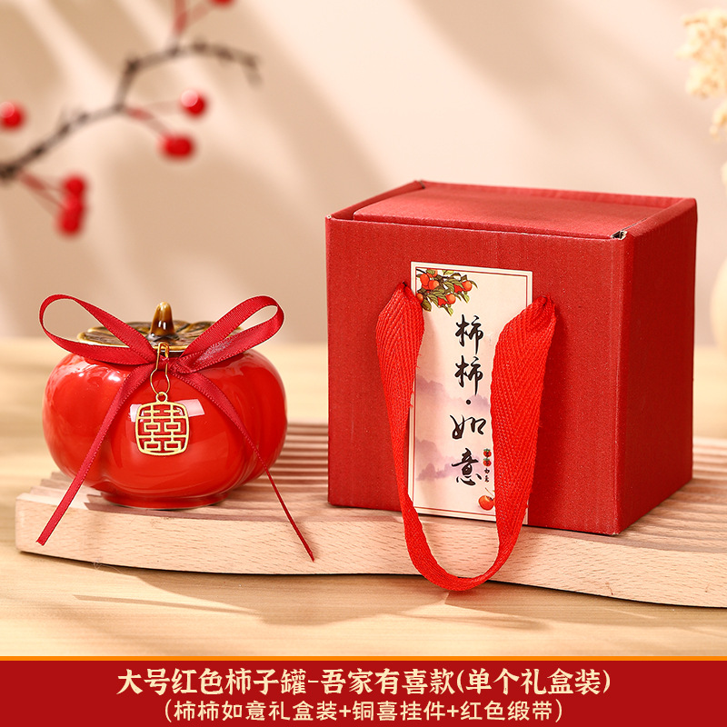 柿柿如意擺件結婚糖盒柿子罐婚禮裝飾伴手禮盒喜柿罐訂婚用品大全