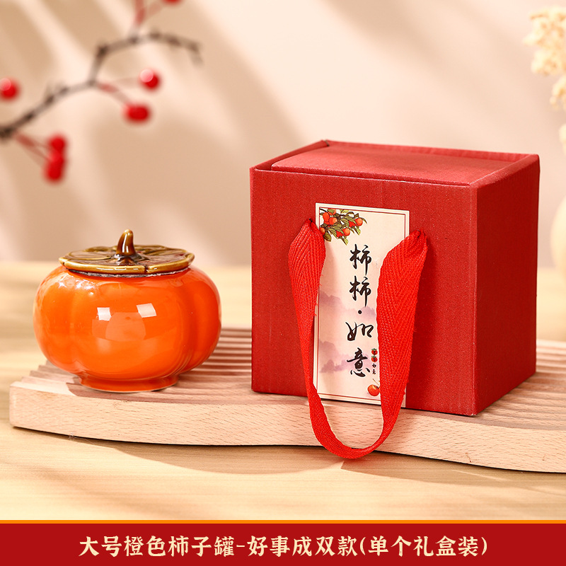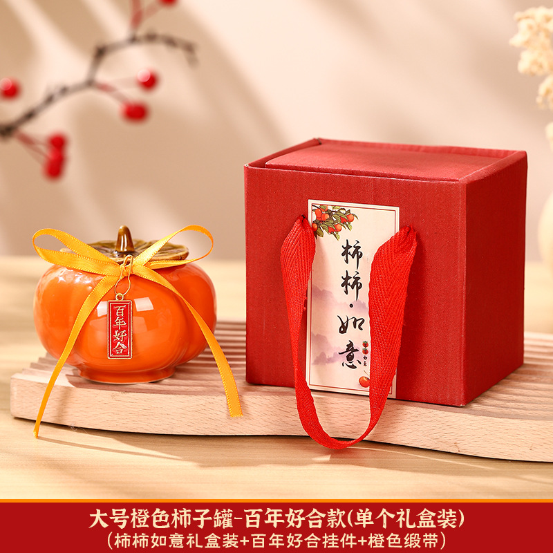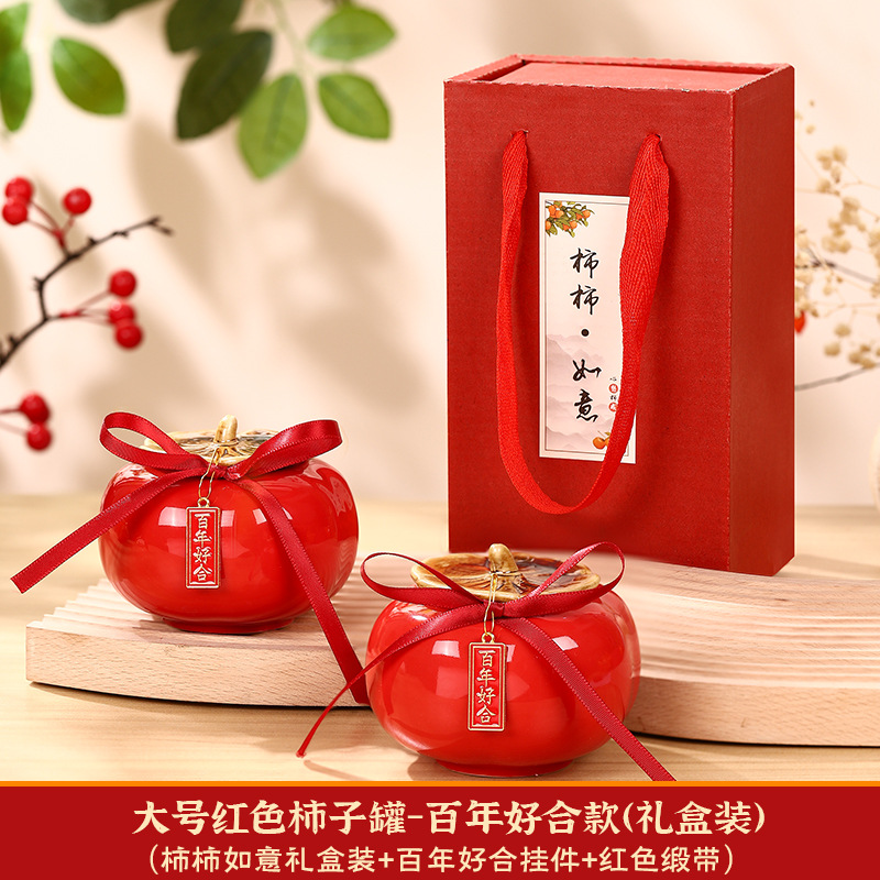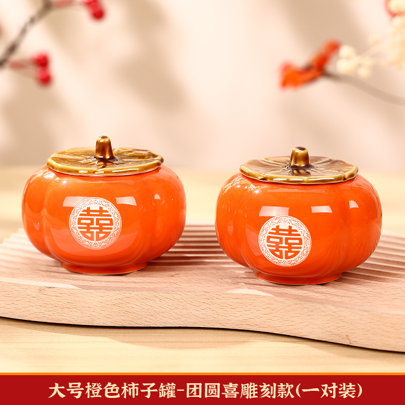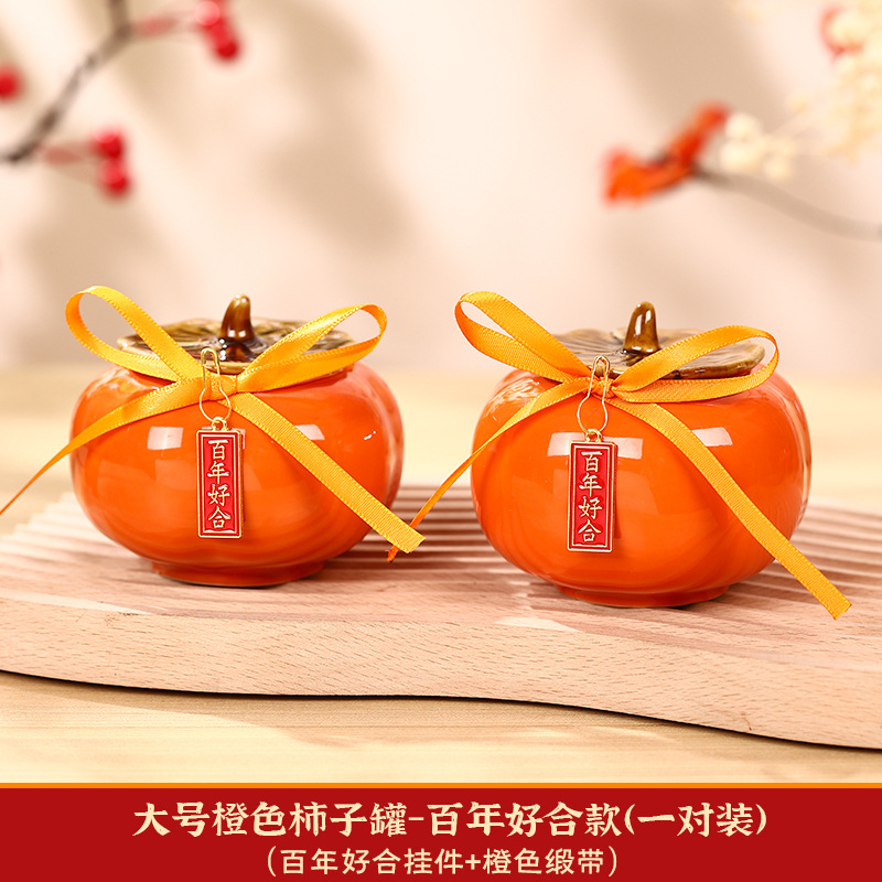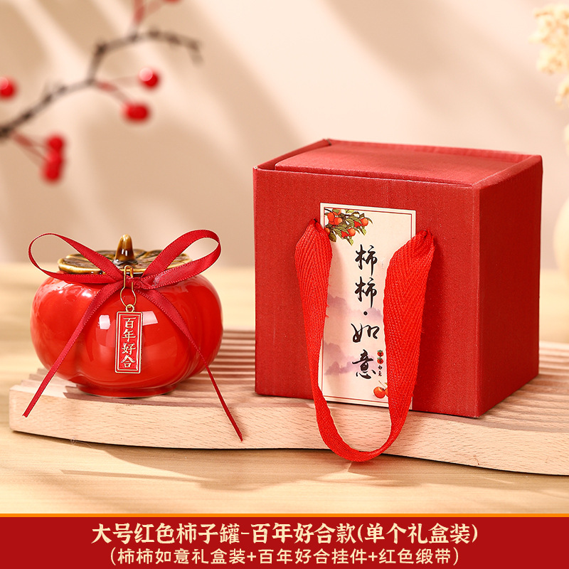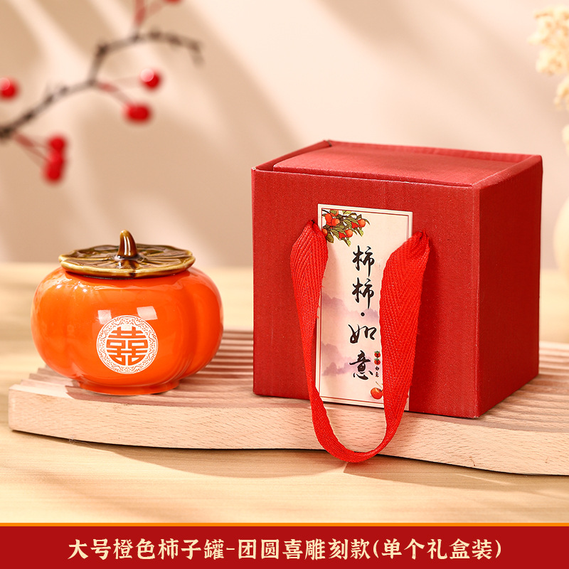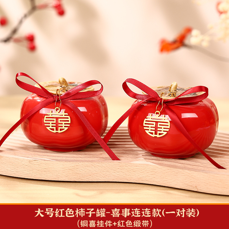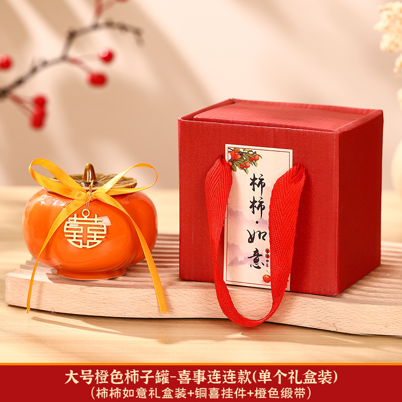 柿柿如意擺件結婚糖盒柿子罐婚禮裝飾伴手禮盒喜柿罐訂婚用品大全