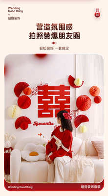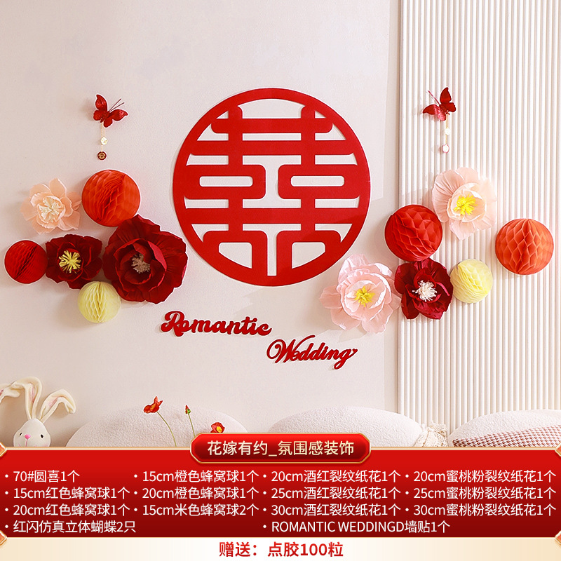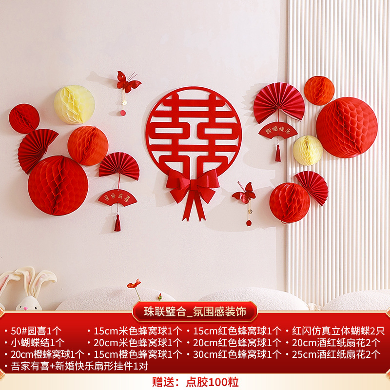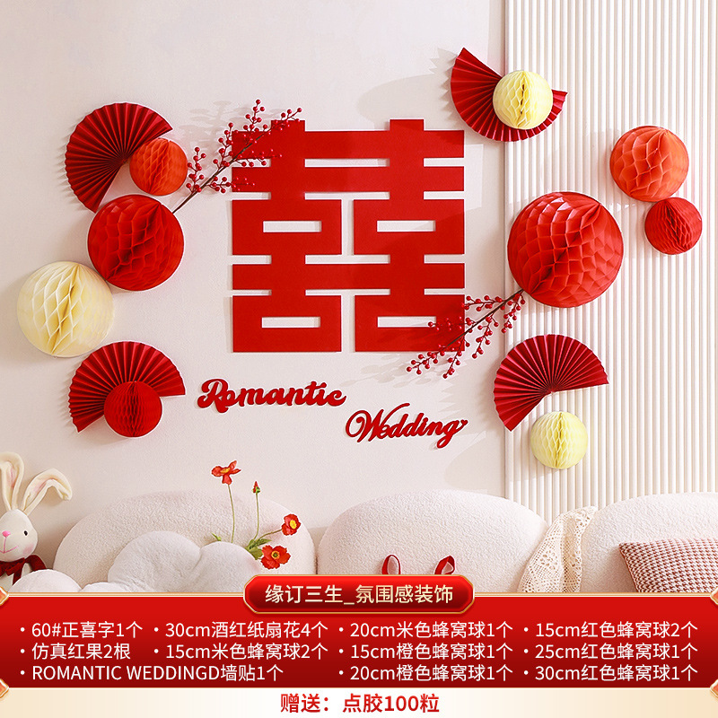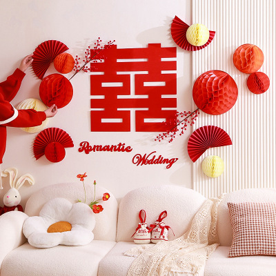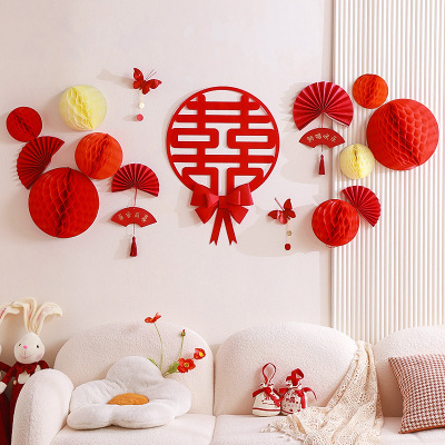 Honeycomb ball background wall wedding living room decoration woman's wedding new house bedroom happy word latte wedding room decoration set