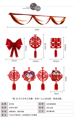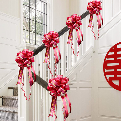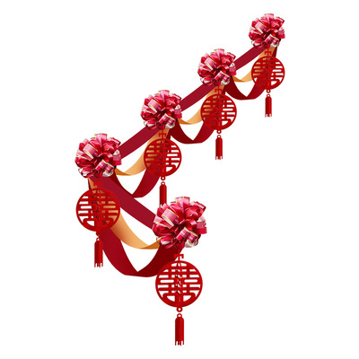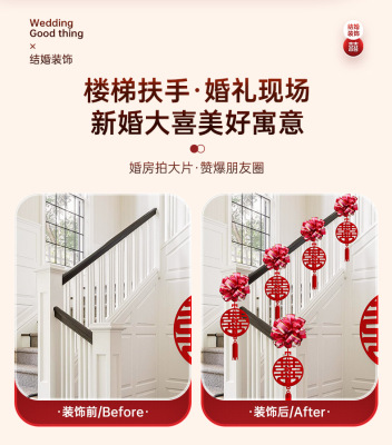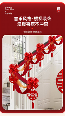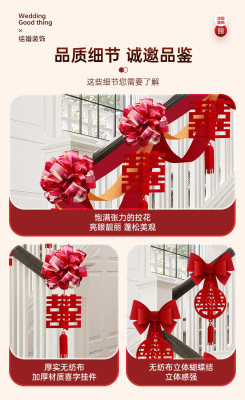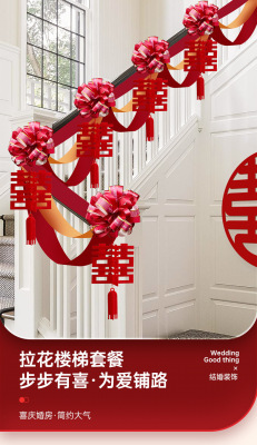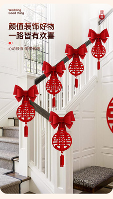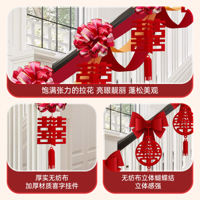 Marriage Stair Rail Decoration, Bridesmaid Wedding, Rural New House, Double Happiness Character, Pull-String Lanterns, Colorful Ribbons, Hanging Ornaments, Wedding Room Decoration Set