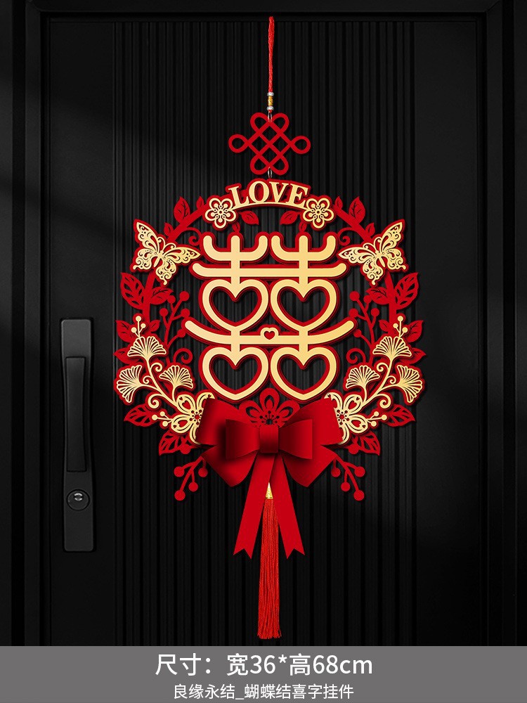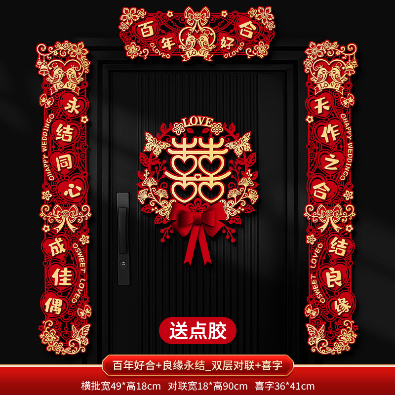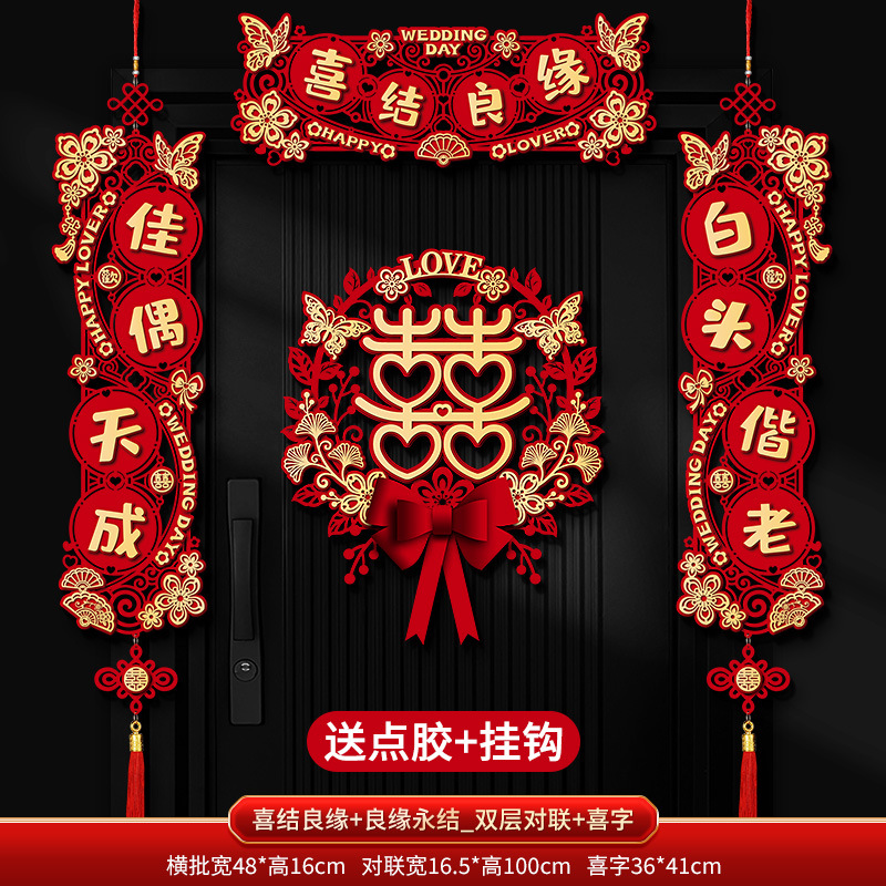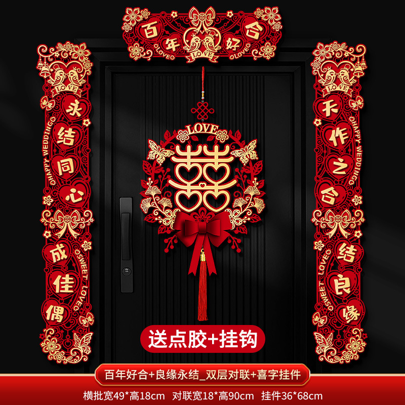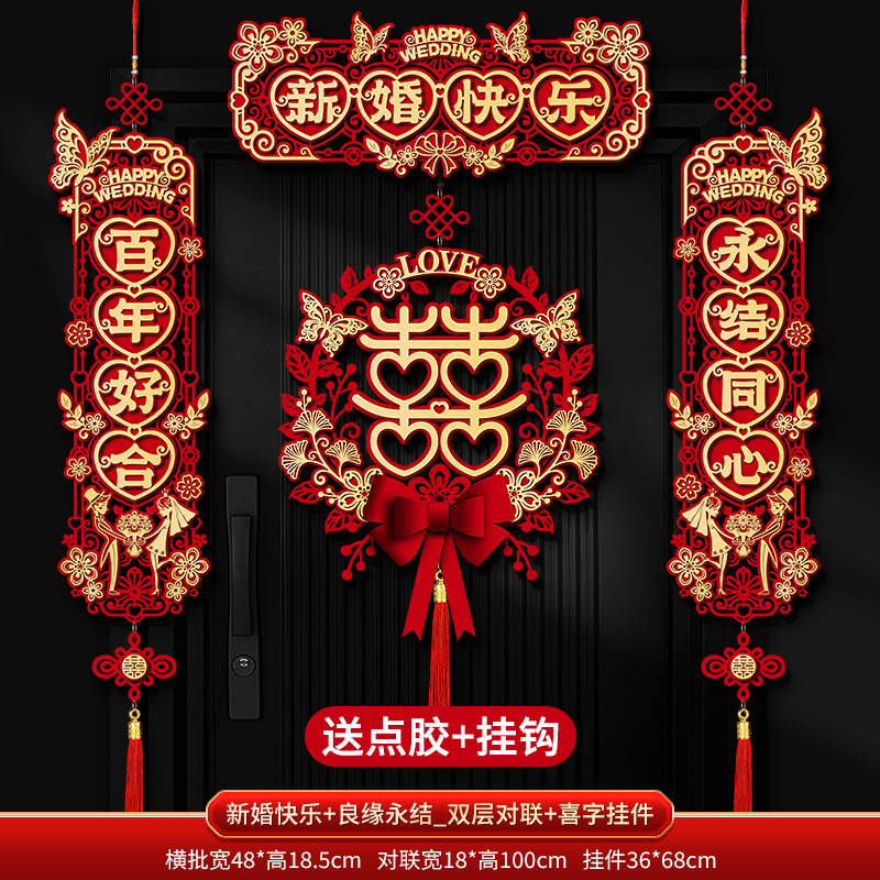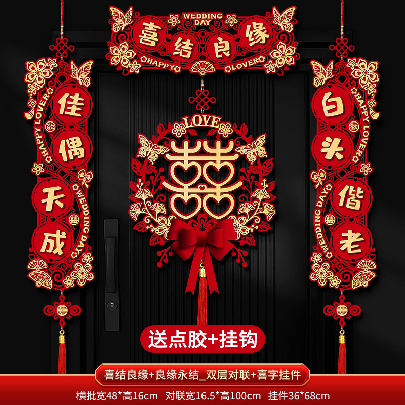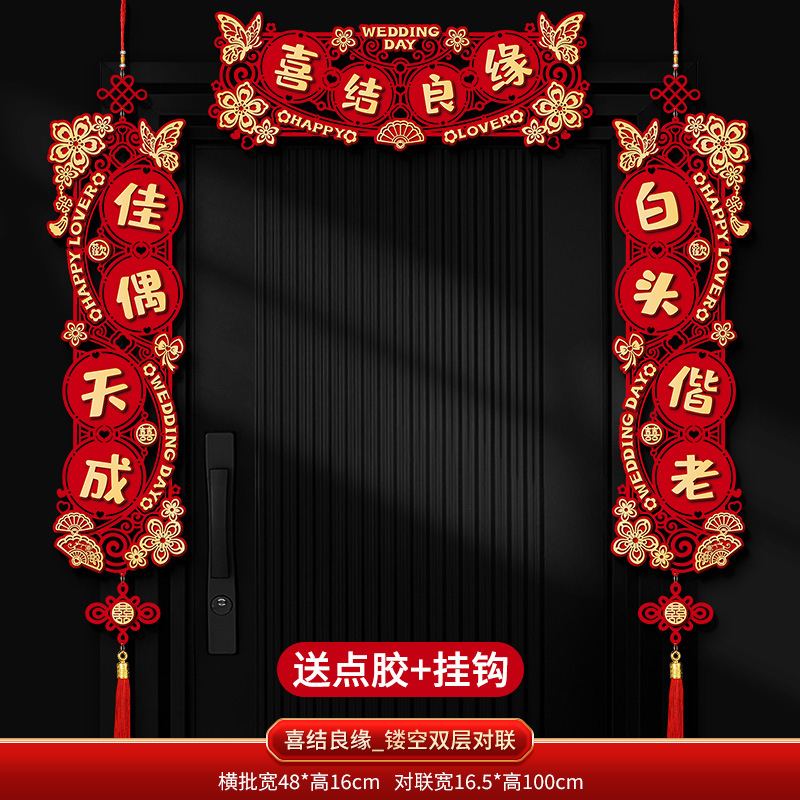 Double-layer couplets with "Good Match" and "Everlasting Union" + Couplets with "Joy" character pendants