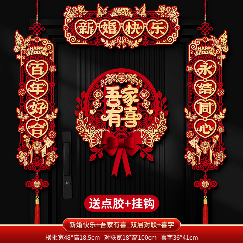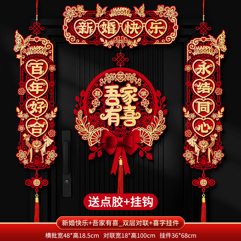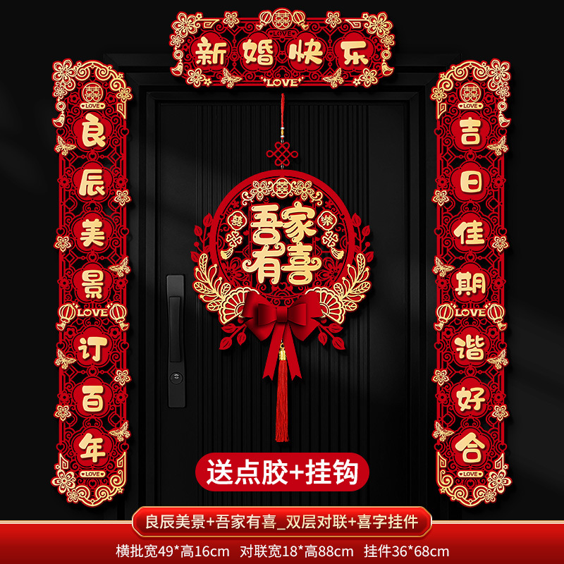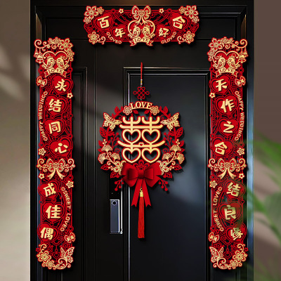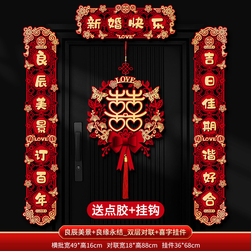 "Happy New Marriage + Double-sided Couple's Couplets + Happy Character Pendant"