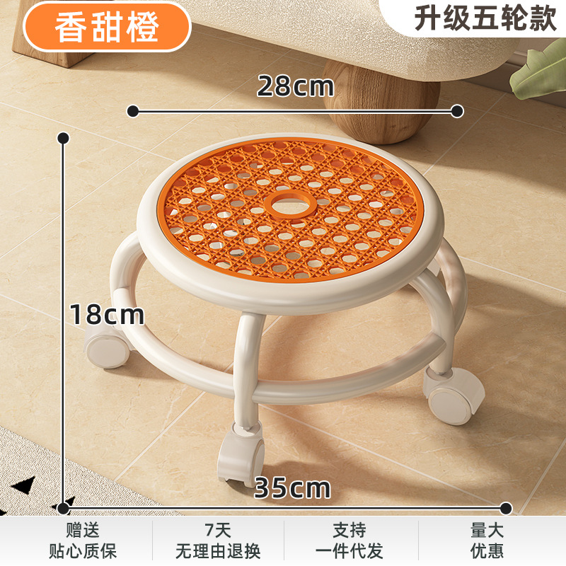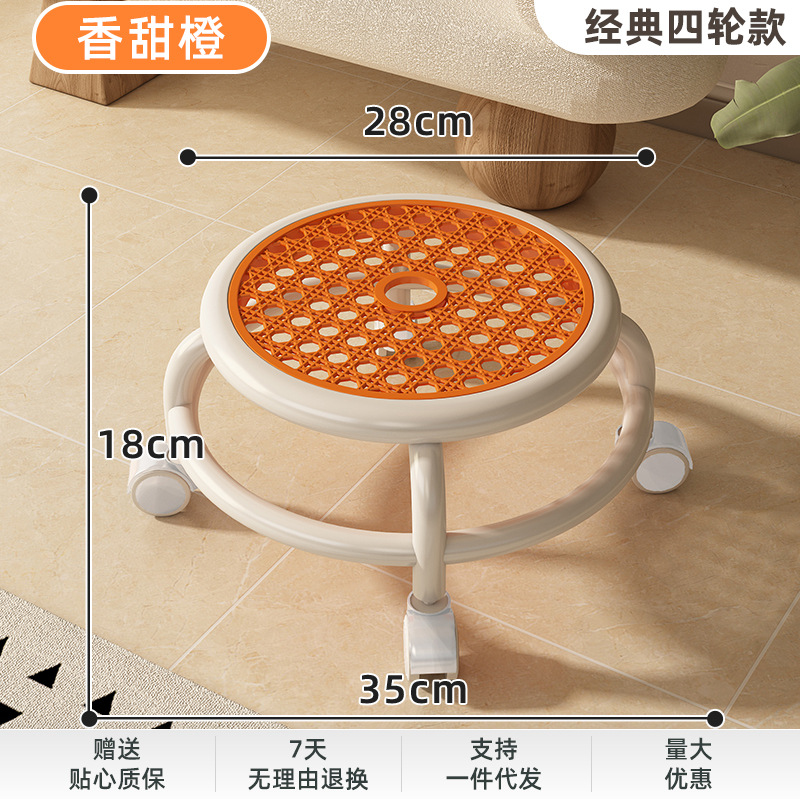 Multifunctional short shoe-changing stool for home, rotating and mobile small stool for home, silent universal wheel round stool, imitation rattan