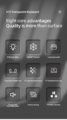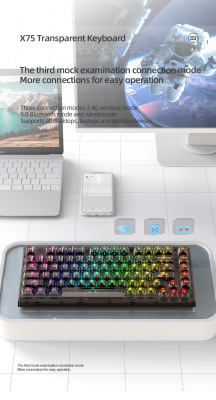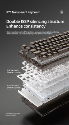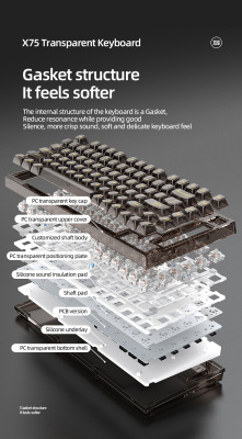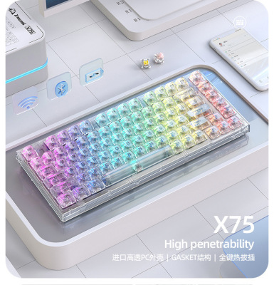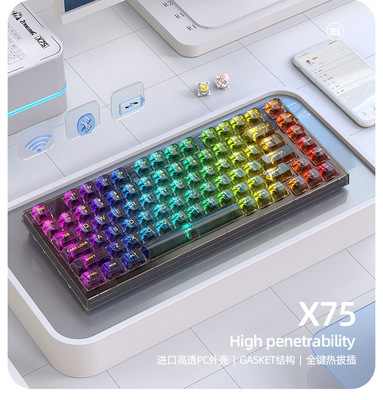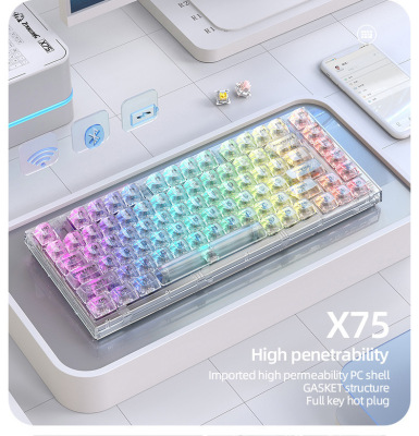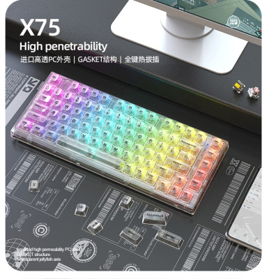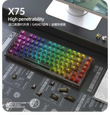 X75 Wired Mechanical Keyboard—Transparent Customizable RGB Office & Gaming Keyboards with Gasket Structure