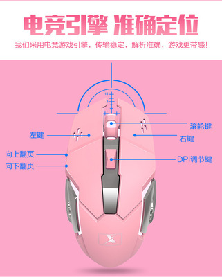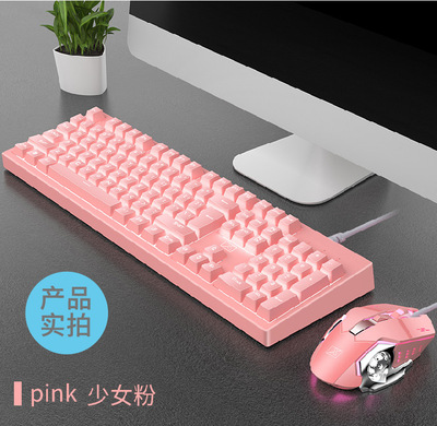New Alliance 616 Dual-Color Backlight Keyboard Cute Pink ABS Material Glowing Wired Mouse and Keyboard with Mechanical Hand Feel
