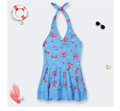 兒童泳衣女連體洋氣印花泳衣無袖可愛女童公主游泳衣工廠