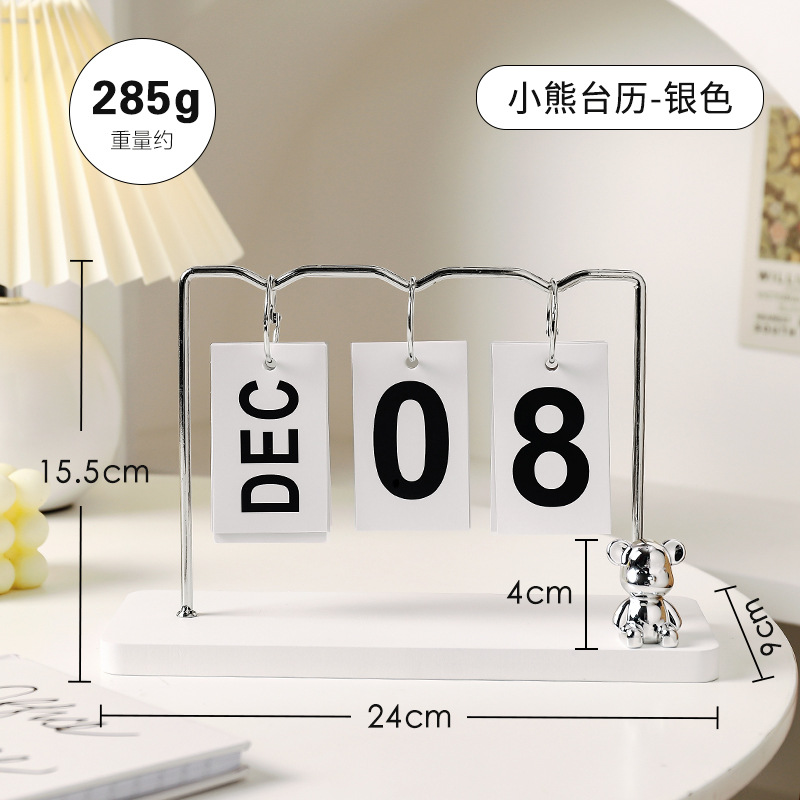 Creative and simple cute bear metal calendar ornament Living room entrance desk decoration page flip small desk calendar ornament
