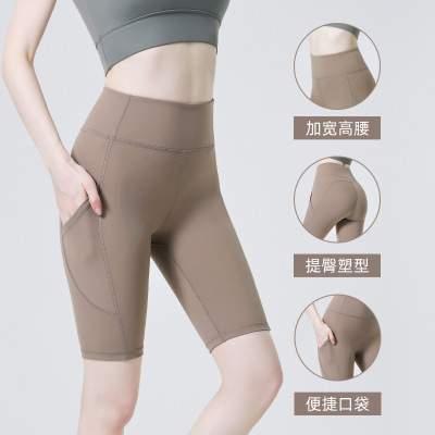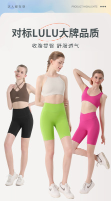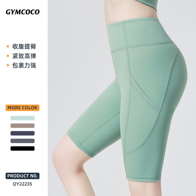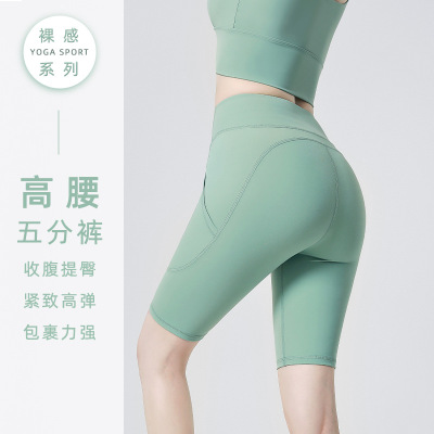 Amazon high-waist five-point yoga pants women's sports cycling shorts quick-drying peach butt lifting fitness shorts wholesale