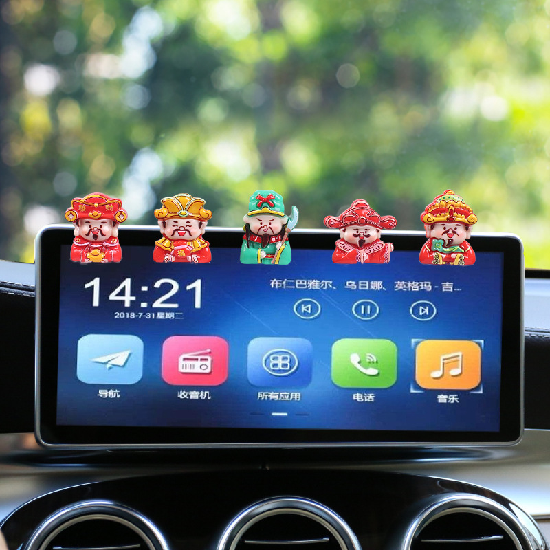 2024 New Cute Swinging God of Wealth Car Ornament Center Console Passenger Decoration Car Accessory