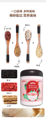 Main nutritional ingredients: adzuki bean, oat bran, oat flour, sorbitol, maltodextrin, black rice flour, coix seed powder, wolfberry, yam powder, bird's nest, compound probiotic freeze-dried powder