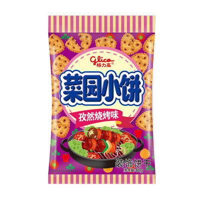 Glico vegetable garden cookies large bag 80g bag bulk multi-flavor snack biscuits mixed package whole box wholesale
