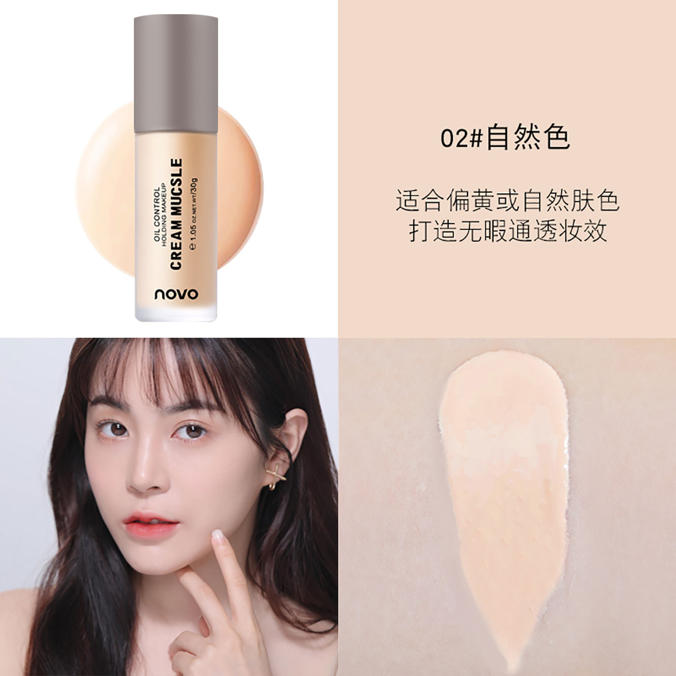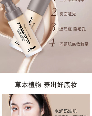 NOVO liquid foundation is waterproof, sweat-proof, does not take off makeup, dry oily skin students, moisturizing, long-lasting, non-stuck powder concealer, the same style as the Internet celebrity