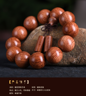 Burmese Rosewood Flower Rosewood Burmese Rosewood Buddhist Rosary Beads Large Fruit Sandalwood Bracelet Exquisite Men and Women's Fashion Trend Accessories