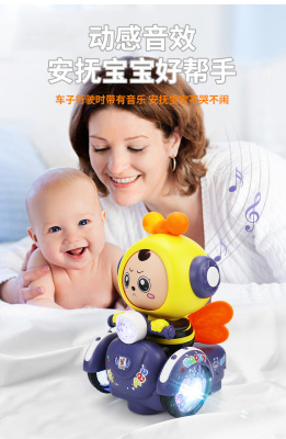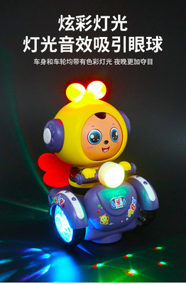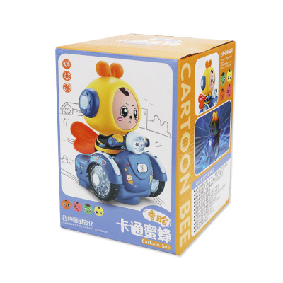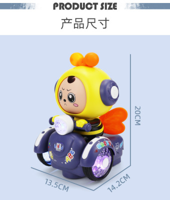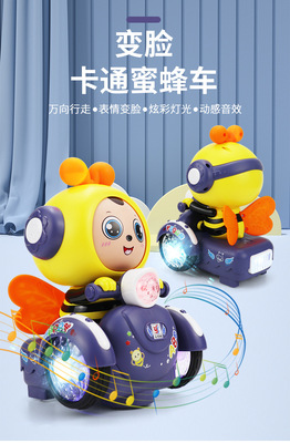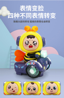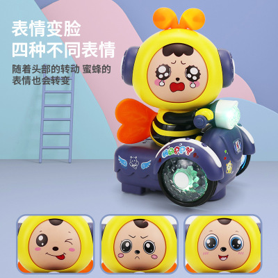 Electric Rotating Toys for Boys and Girls, Cartoon Face-Changing Little Bee with Lights and Music, Popular Cross-Border Item