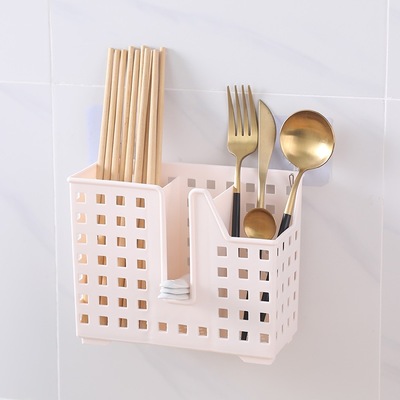 Factory Kitchen Chopstick Holder Wall-mounted Dual-purpose Plastic Hollow 3-Compartment Utensil Chopstick Storage Rack