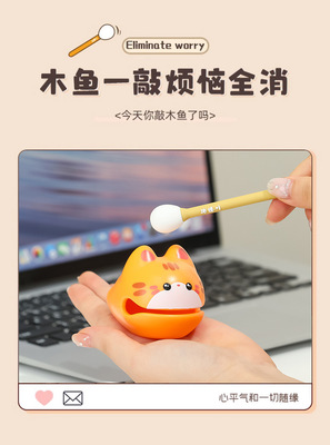 Creative cat wooden fish ornaments beating cute percussion instruments office meditation decompression toys decompression gifts