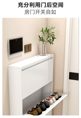 Ultra-thin Shoe Cabinet for Home Entryway, Large Capacity, Nordic Simple Metal Slim Entryway Hinge Shoe Cabinet