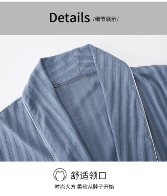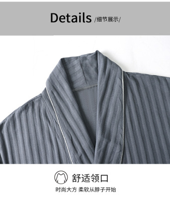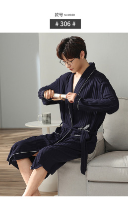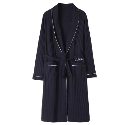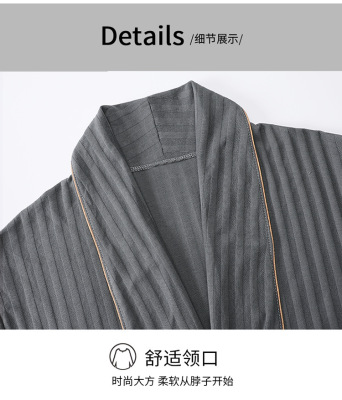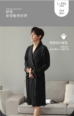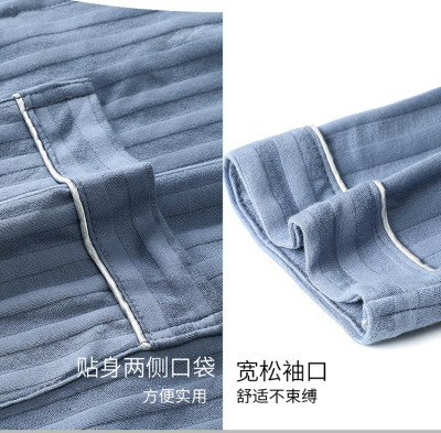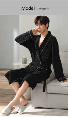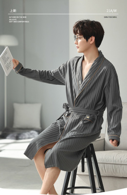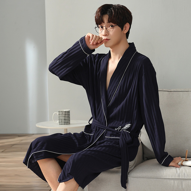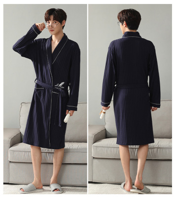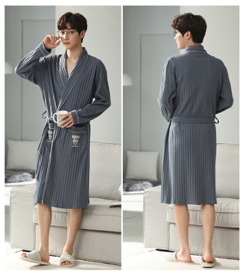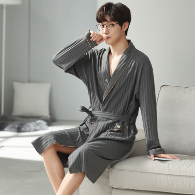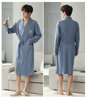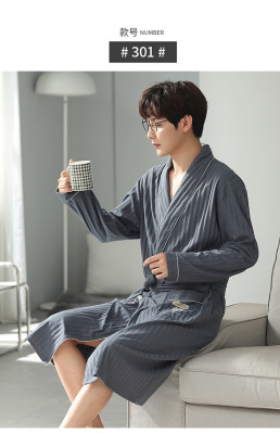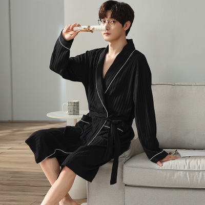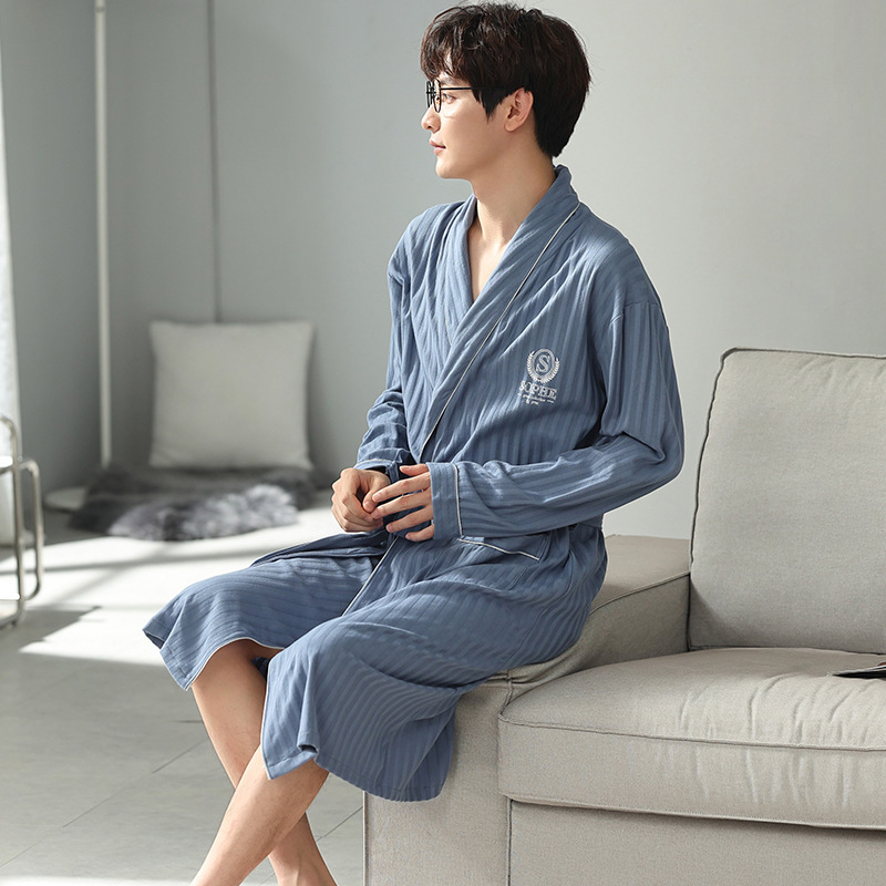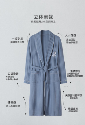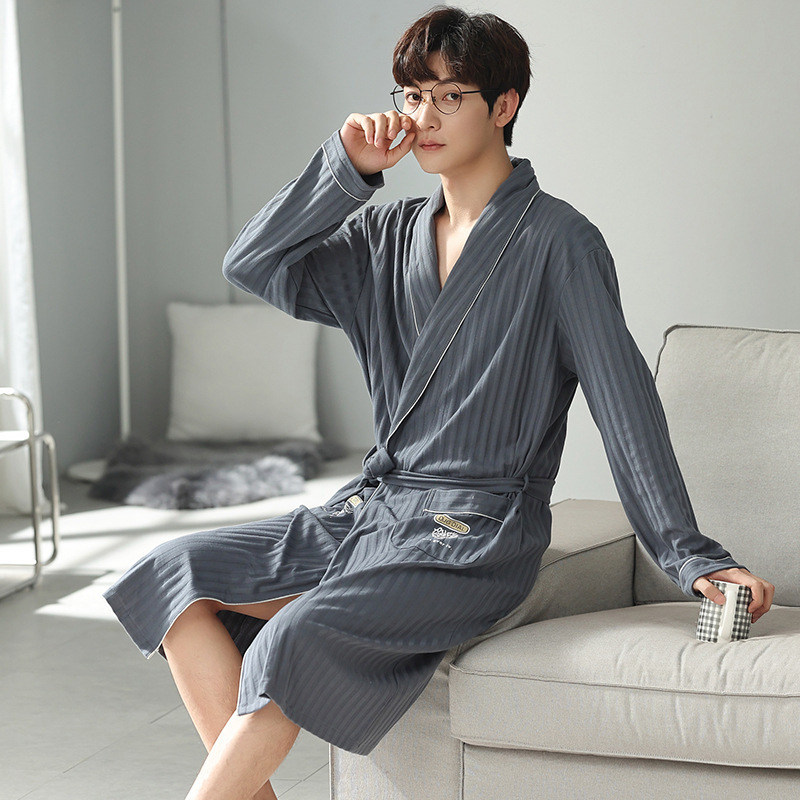 Men's Pure Cotton Long Sleeve Loose Spring and Autumn Season 2022 New Arrival Medium Length Robe Simple Plus Size Home Wear