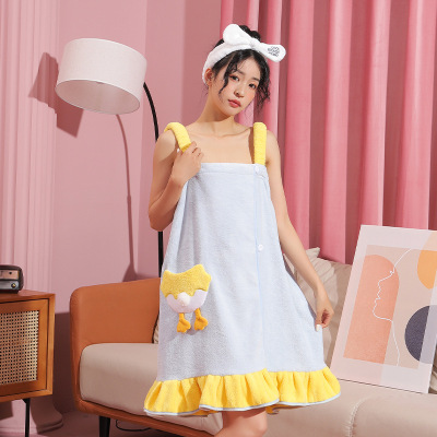 Bath Towel Dress Suitable for Both Wearing and Wrapping, Autumn and Winter Household Use, Coral Velvet Water- Absorbent Bath Robe with Cartoon Design, Adult Strappy Bralette Bath Skirt for Women, Wholesale
