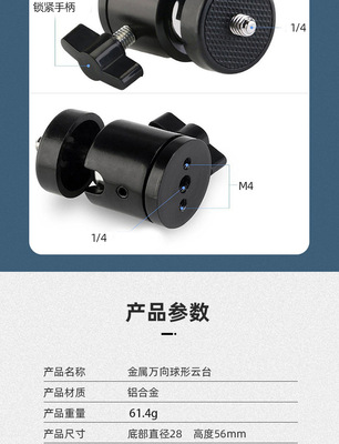 Spherical metal pan/tilt mobile phone live broadcast light stand accessories camera photography bracket round universal adjustable pan/tilt
