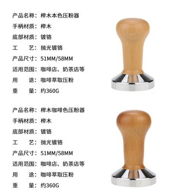 Solid wood press coffee thread press hammer solid Italian machine stainless steel filling flat bottom 51mm53m58mm
