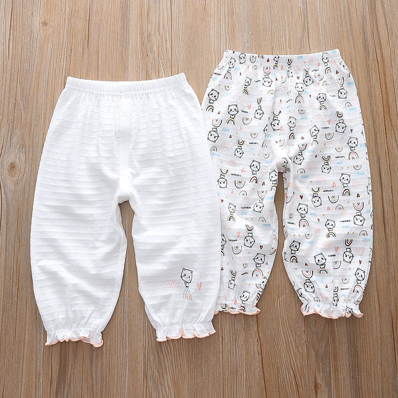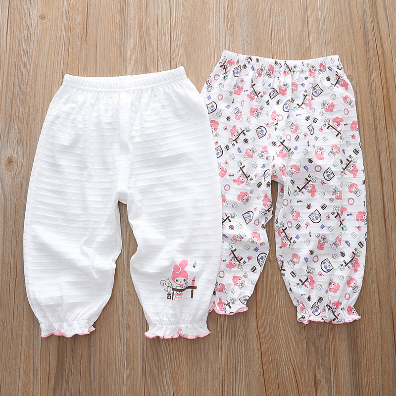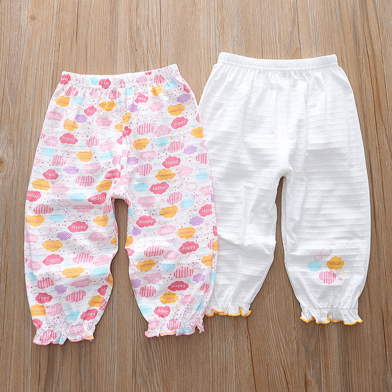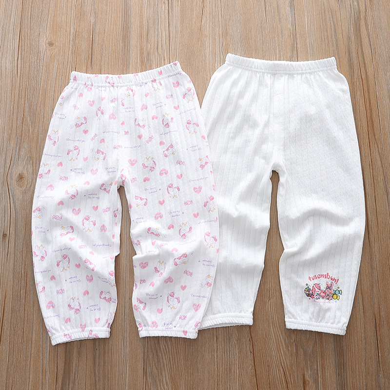 Distribution and dropshipping for spring and summer girls' medium and large children's soft, skin-friendly, sweat-absorbent, breathable base home mosquito-proof 9/10 sleep pants