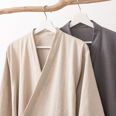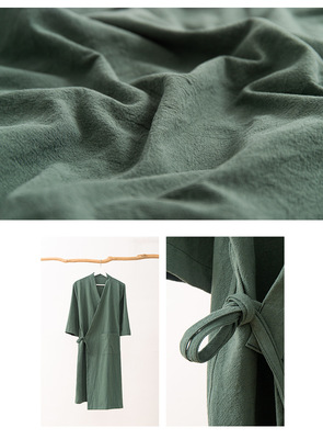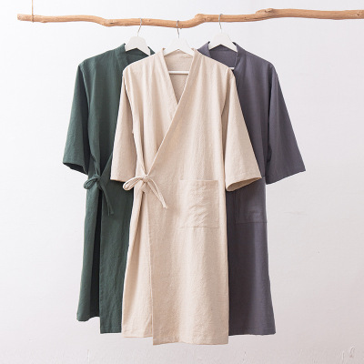 Lusu cotton linen linen pure Chinese style partial-breasted bathrobe yukata bed and breakfast hotel steaming suit high-end club SPA beauty