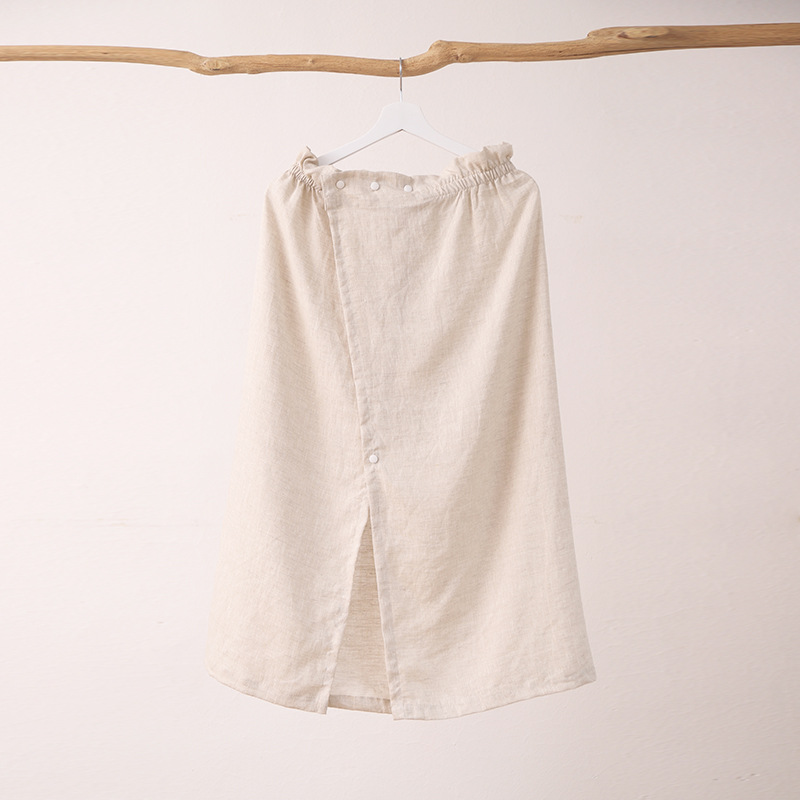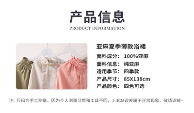 French imported pure linen bath robe and nightgown, seamless, can be worn to beauty salon, breathable fabric, cross-border.