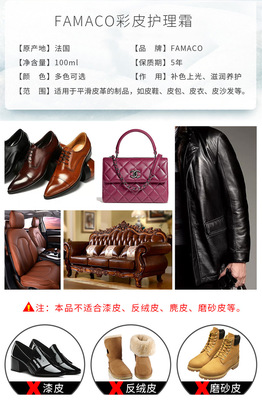 French FAMACO imported shoe polish 0722 color leather care cream, color replenishment and dyeing, colored shoe polish care and maintenance