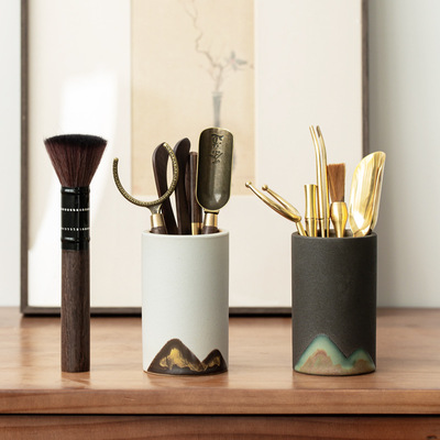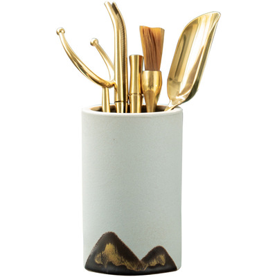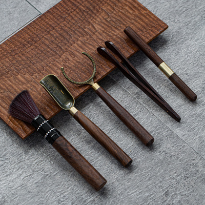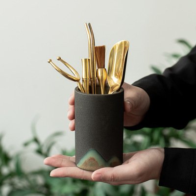 遠山粗陶茶道六君子套裝陶瓷茶筒黑檀木實木茶具零配件純銅6君子