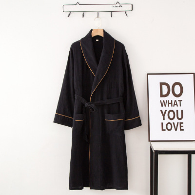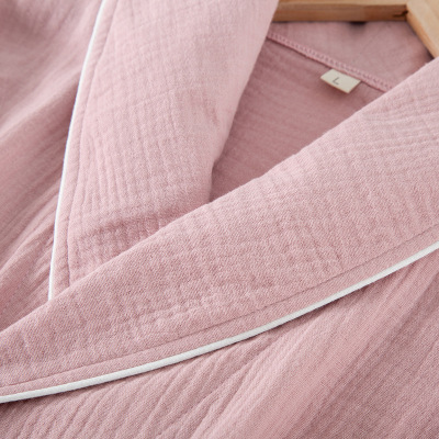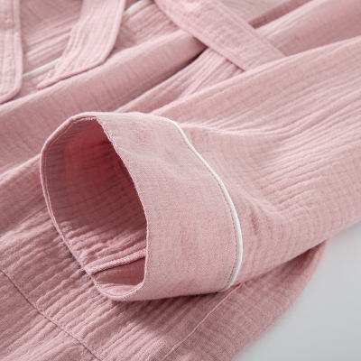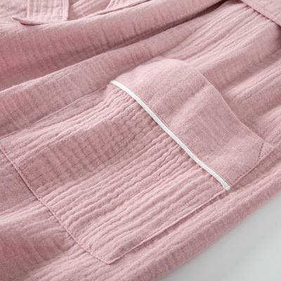Cotton Crepe Blouse Open-Front Knee-Length Home Sleep Dress Seasonal Thin Version for Men and Women Couple's Hotel Hot Spring Robe
