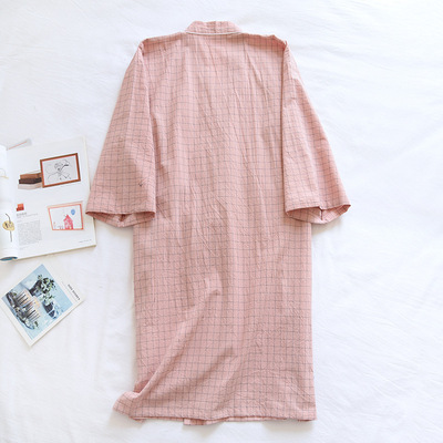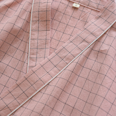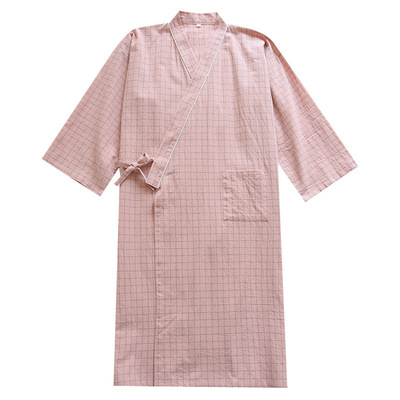 Woven Cotton Washed Check Couple's Japanese Style Kimono Sleep Gown Spring Summer Autumn Thin Bath Robe For Men And Women Steam Bath Robe