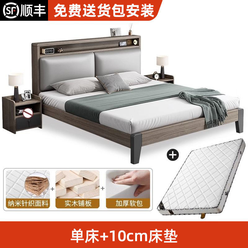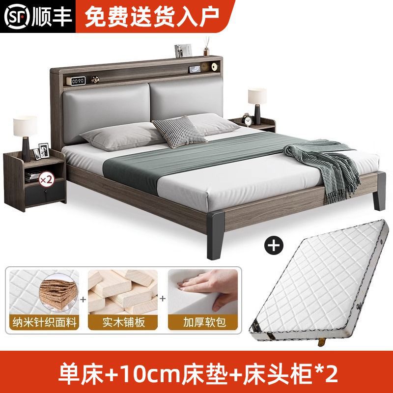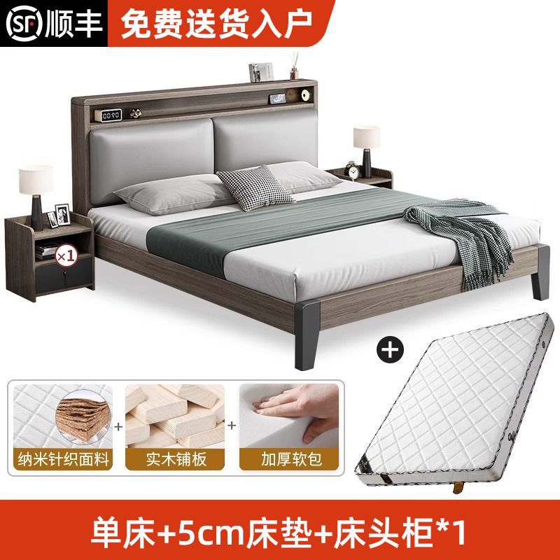 Bed + 5cm brown cushion + bedside table * 1 [packed upstairs] + frame structure