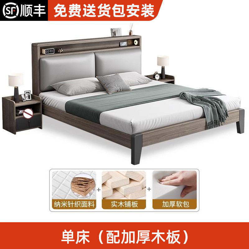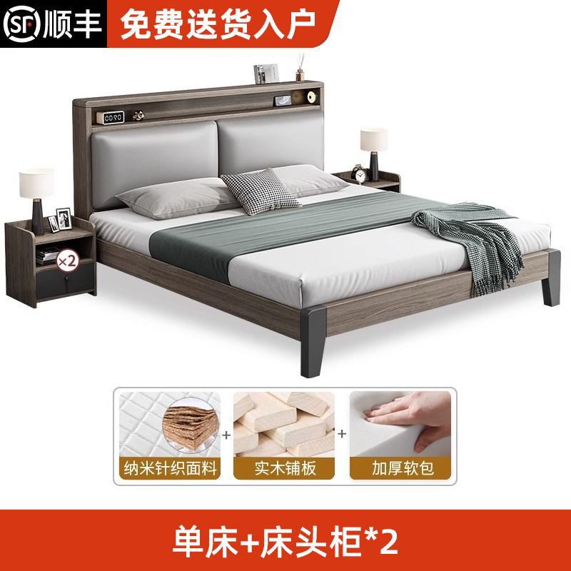 Solid wood bed Nordic style 1.5m light luxury home double bed 1.8m master bedroom bed 1.2m rental room single bed frame