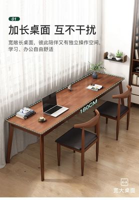 長條書桌子實木腿長方形辦公桌雙人學生學習寫字電腦桌家用工作檯