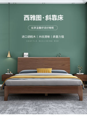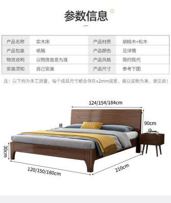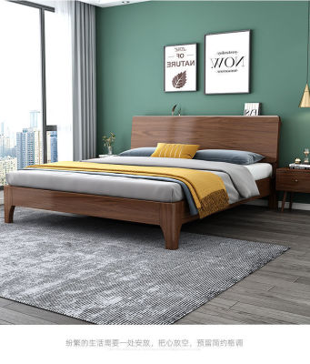 胡桃木實木床雙人1.8米主臥現代簡約1.5米1.2m儲物床家用主臥婚床