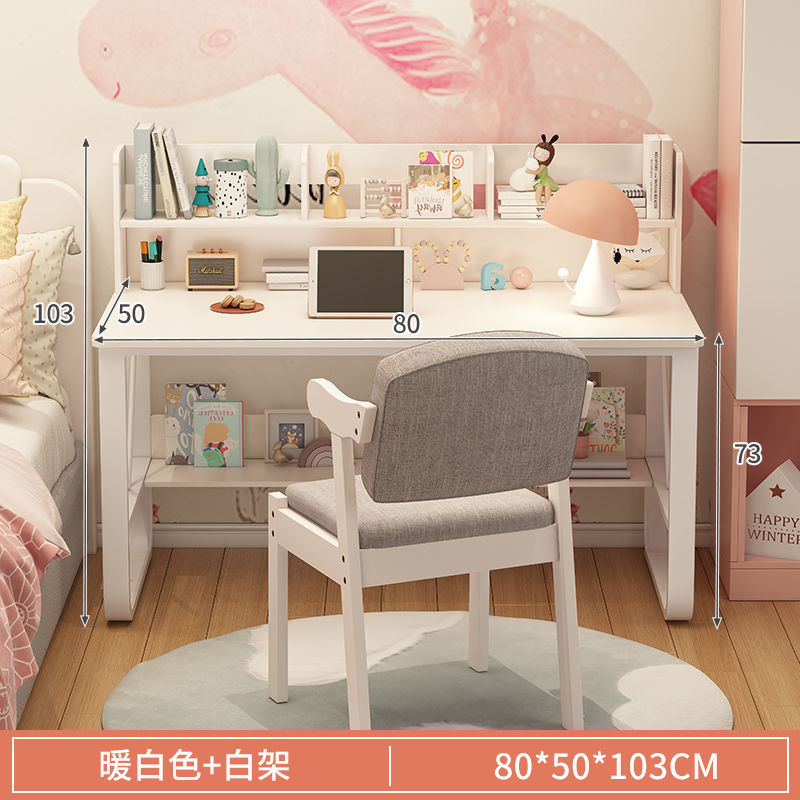 書桌一體家用女孩臥室學生兒童學習一套電腦桌家裝建材書房家具簡