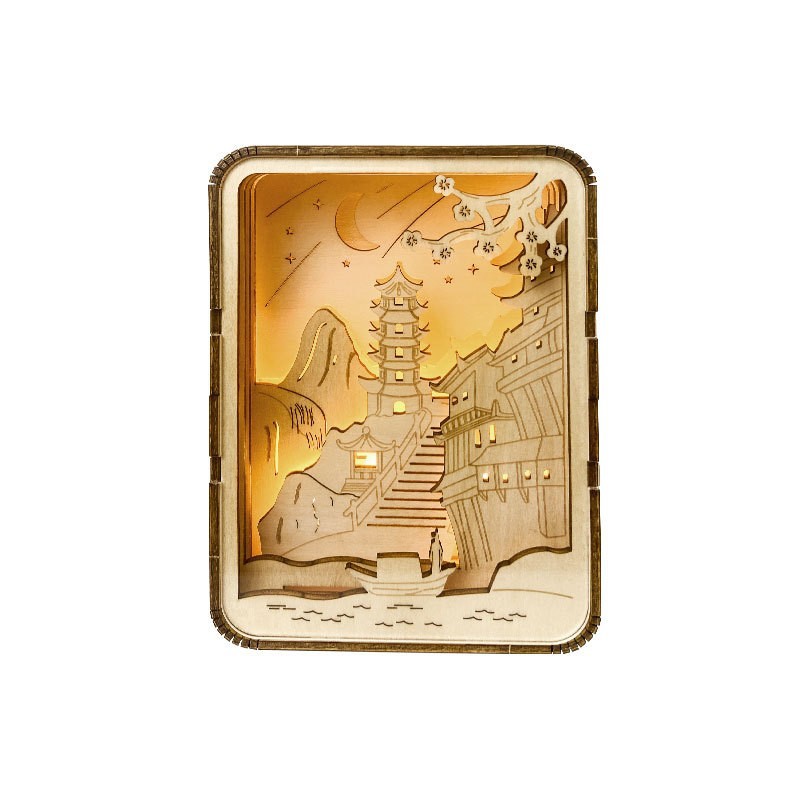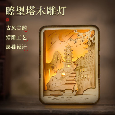 Wood Carving Night Light for DIY Assembly, Chinese Style Cultural Creative Home Decor Ornament, Souvenir Gift for Scenic Spots, Wholesale