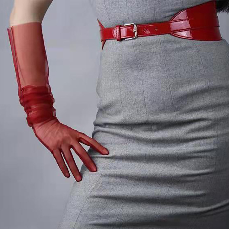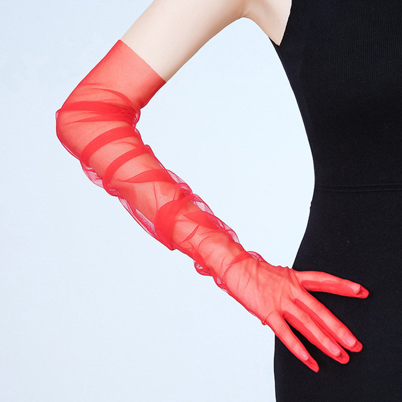 Bridal Transparent Sexy Tulle Long Gloves DIY70CM Prom Banquet Host Dress Photo Covering Flesh Black Red White