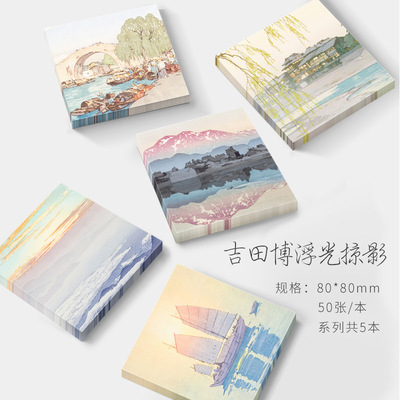 吉田博便簽本世界名畫便簽紙無粘性日系浮世繪手賬裝飾備忘條